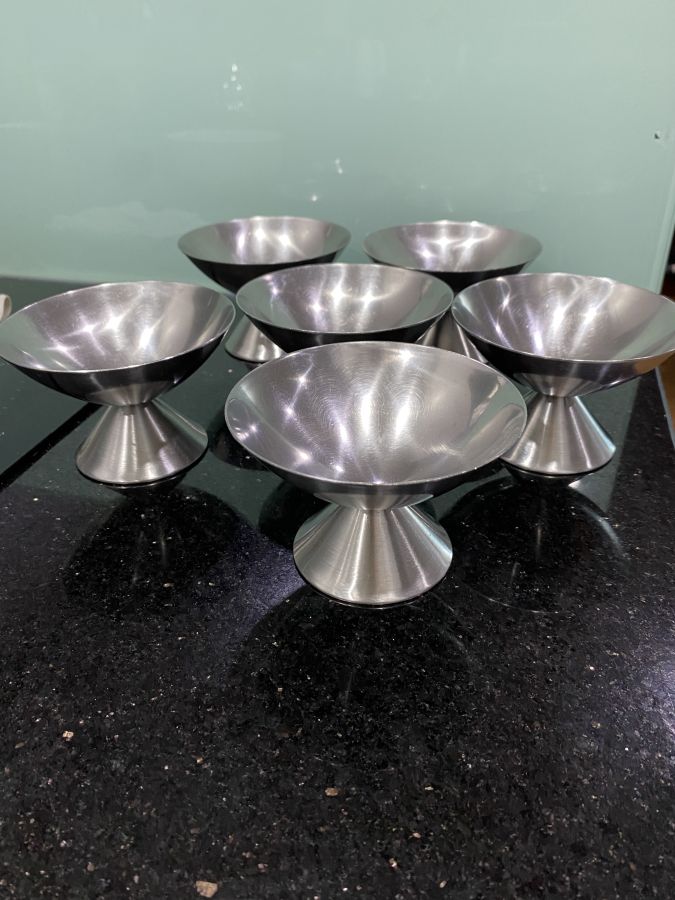 6. Ly (chén) inox 18/8 để ăn kem của hãng Rostfrei Đông Đức xưa: 900k/6 cái