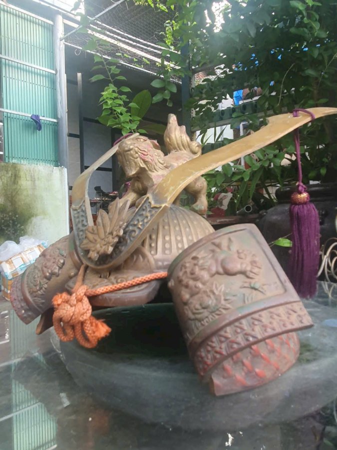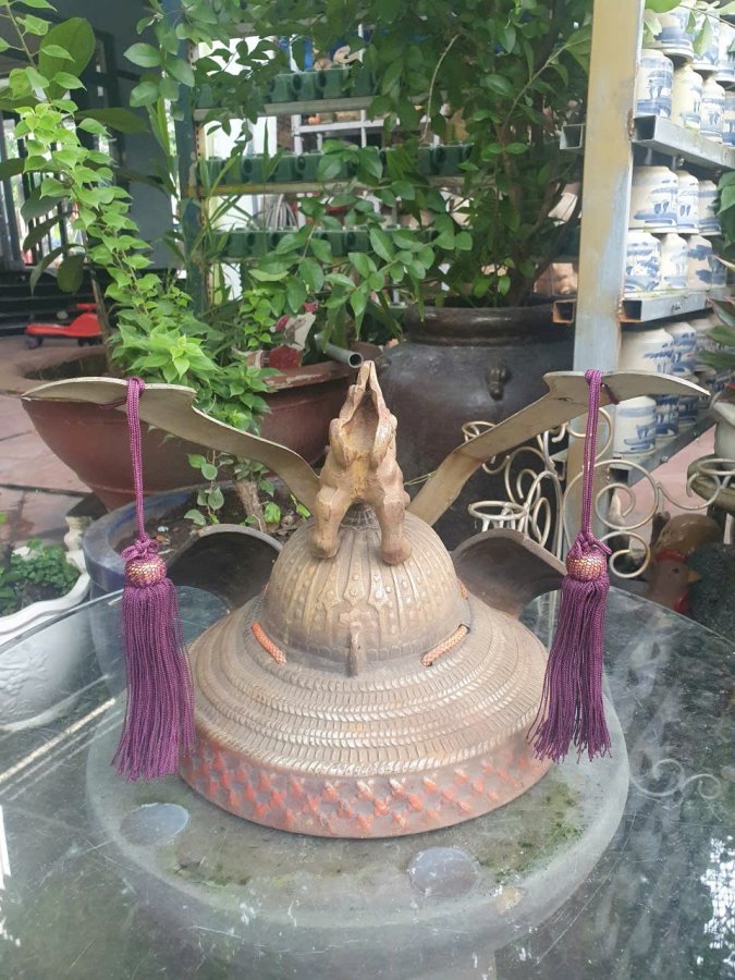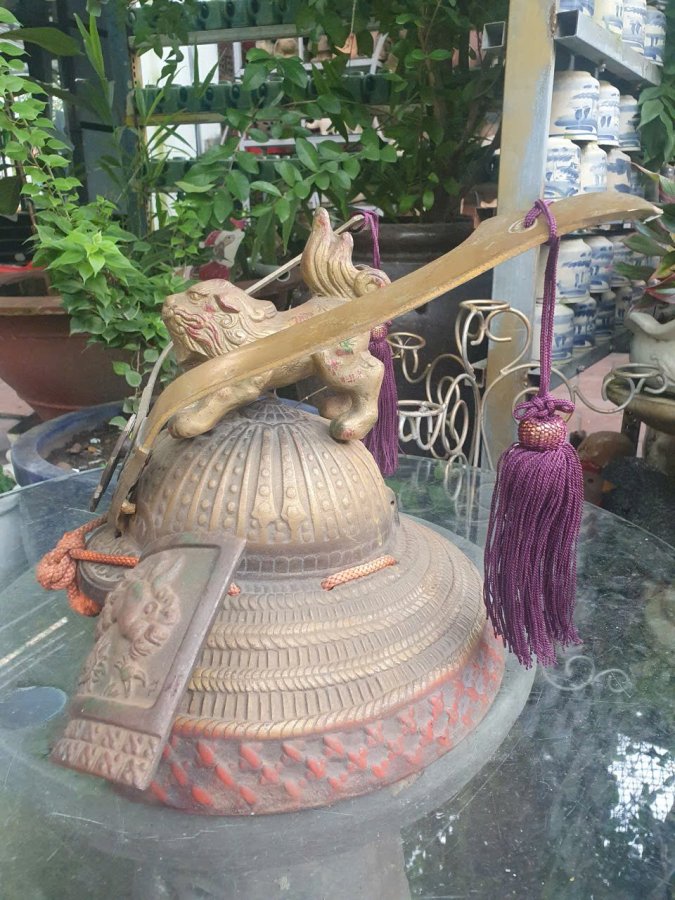 Mũ quyền năng Samurai được chế tác thủ công bằng kim loại. Chi tiết hoa văn khắc nổi sinh động ,bằng đồng và hợp kim.Kt 30cm*34cm.Nặng gần 6kg.