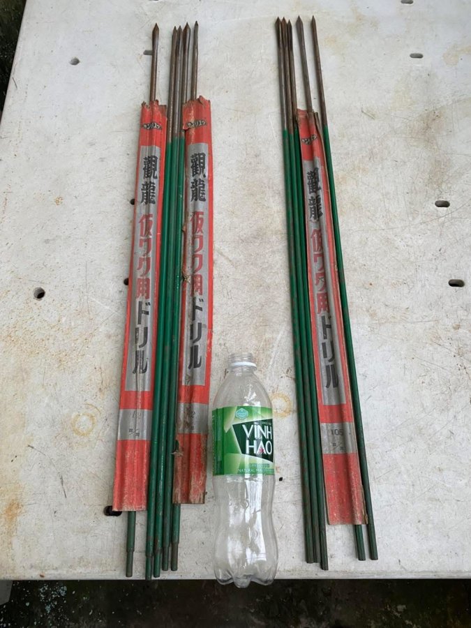 Mũi khoan gỗ và các vật liệu tương tự, hàng bãi Nhật chưa sử dụng, tình trạng như hình, thiết kế thông minh: lưỡi đủ cứng để chịu bào mòn mà toàn thân lại dẻo dai không giòn nên có gì thì cong chứ không gãy. Siêu dài 75cm với 2 size: