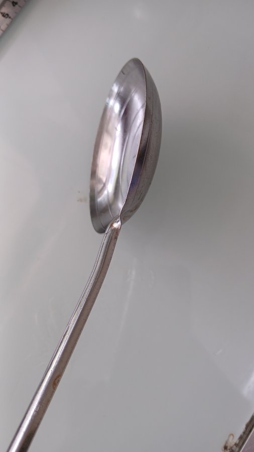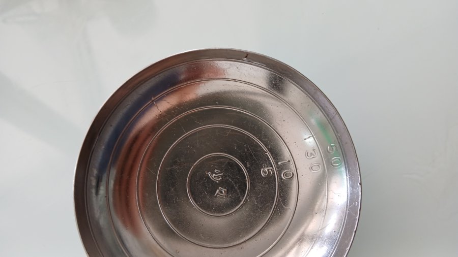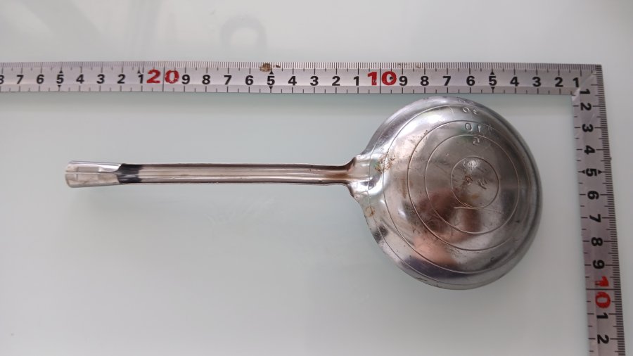 Bằng kim loại chống rỉ tốt dành đo lường dầu mỡ hoặc các thứ chất lõng rất chính xác, muỗng còn mới tinh gần như chưa xài.