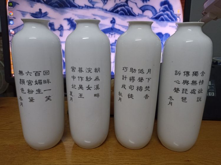 N12.10 Giao lưu bộ bình ve tứ đại mỹ nhân Trung Quốc gồm 4 bình, cao 26cm, vòng bụng 28, bình lành đẹp
