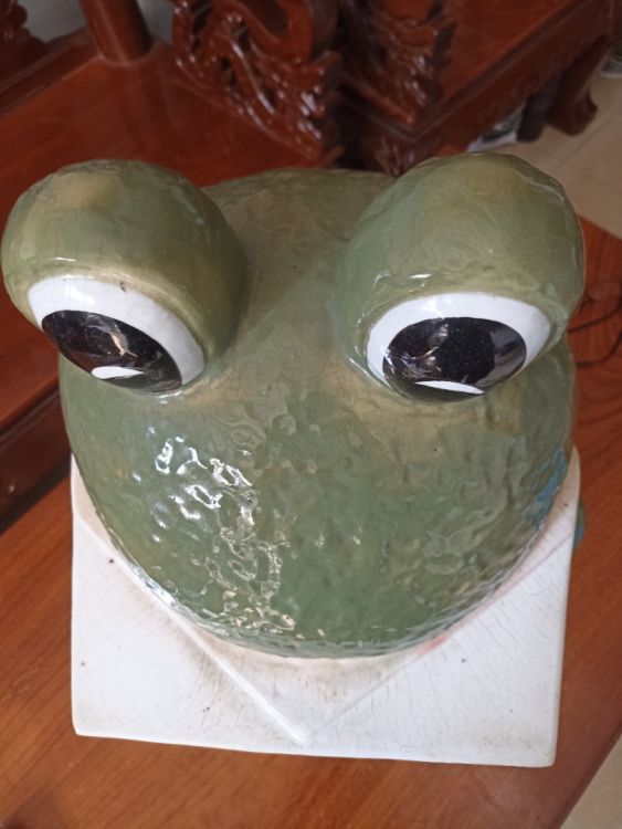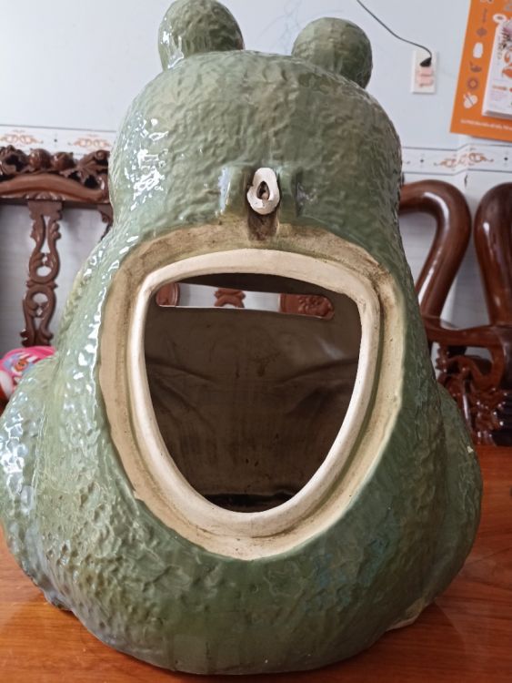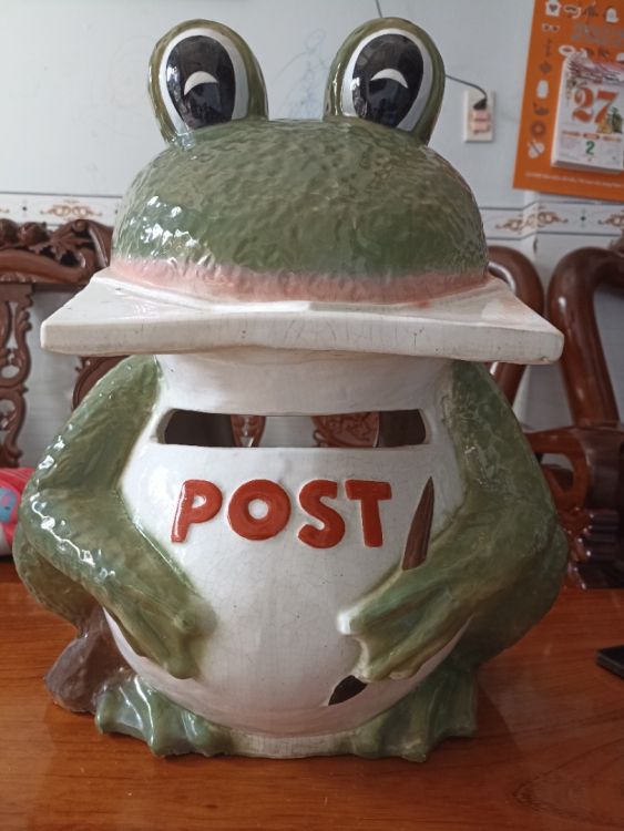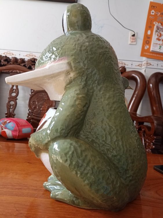 N16.10 Giao lưu thùng thư hình con ếch bằng gốm , cao 45cm, vòng bụng 100cm, mất nắp đậy phía sau như hình, còn lại lành đẹp, già đồ