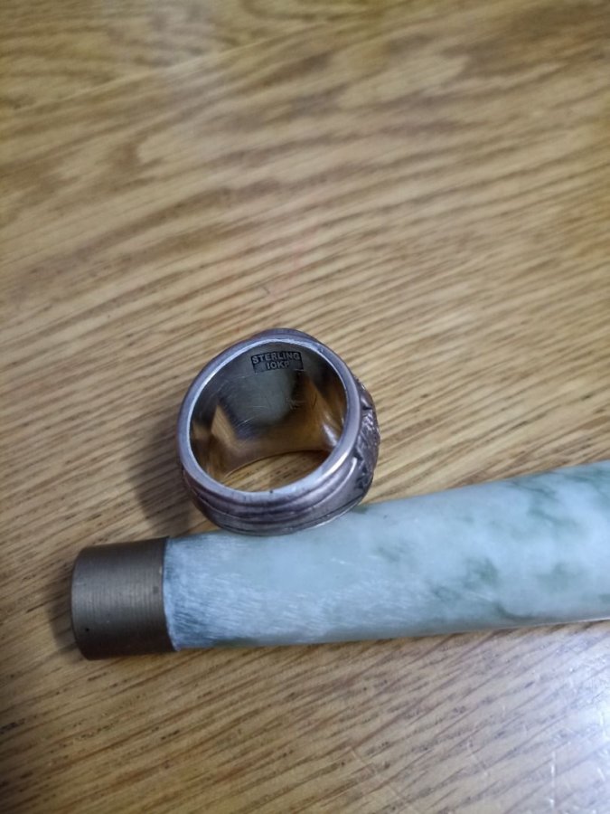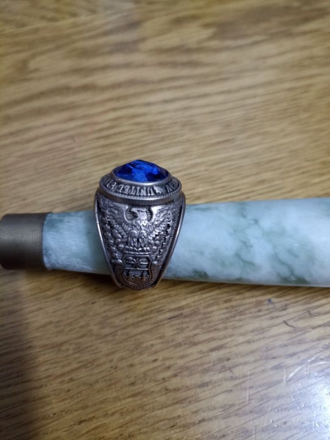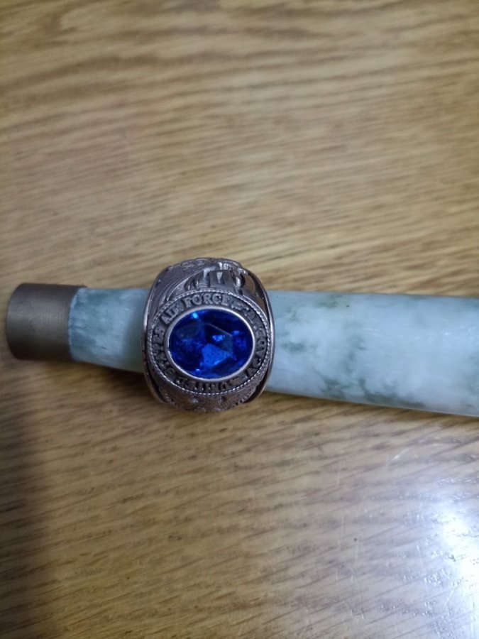 N20.11 Giao lưu nhẫn mỹ sterling 10KP, nhẫn của không quân Mỹ, size lớn, đường kính 20, hột màu xanh biển, cắt giác cạnh