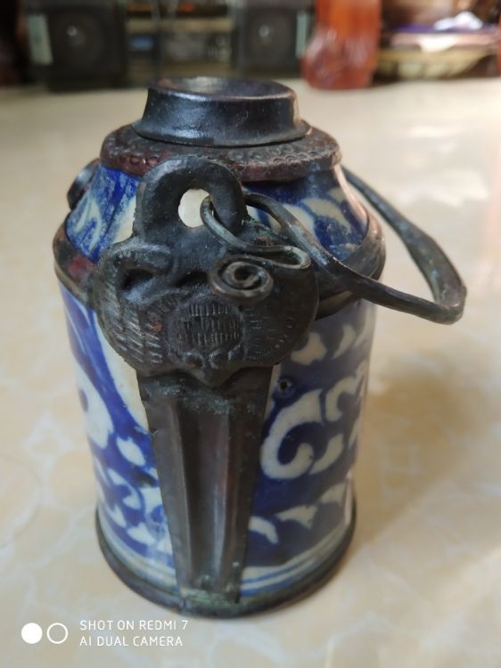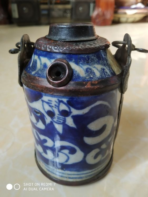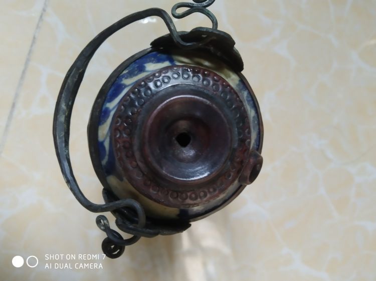 N4.10 giao lưu cái điếu tàu, làm từ nhạo tàu cổ, cao 9 cm