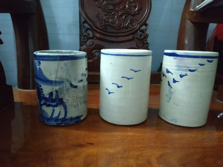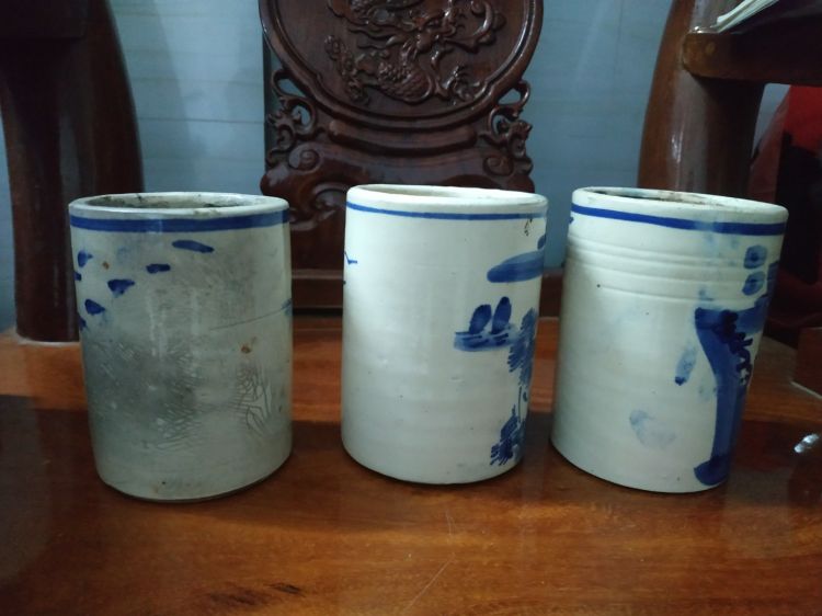 N5.10 Giao lưu 2 ống bút xưa, cao 13cm, đường kính miệng 9.5cm, 350k/ 1 cái