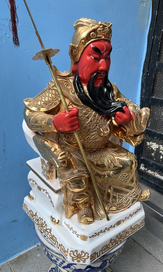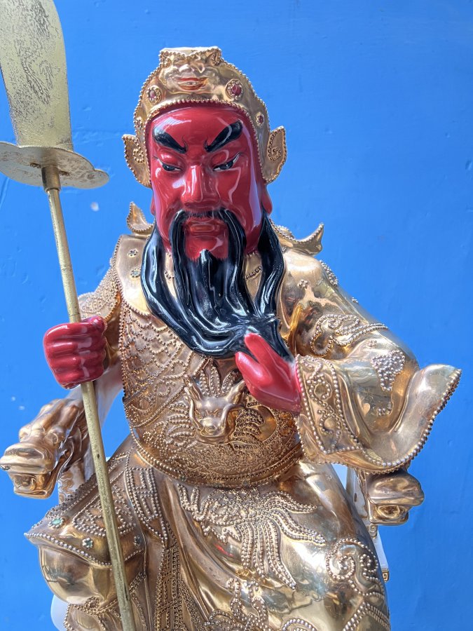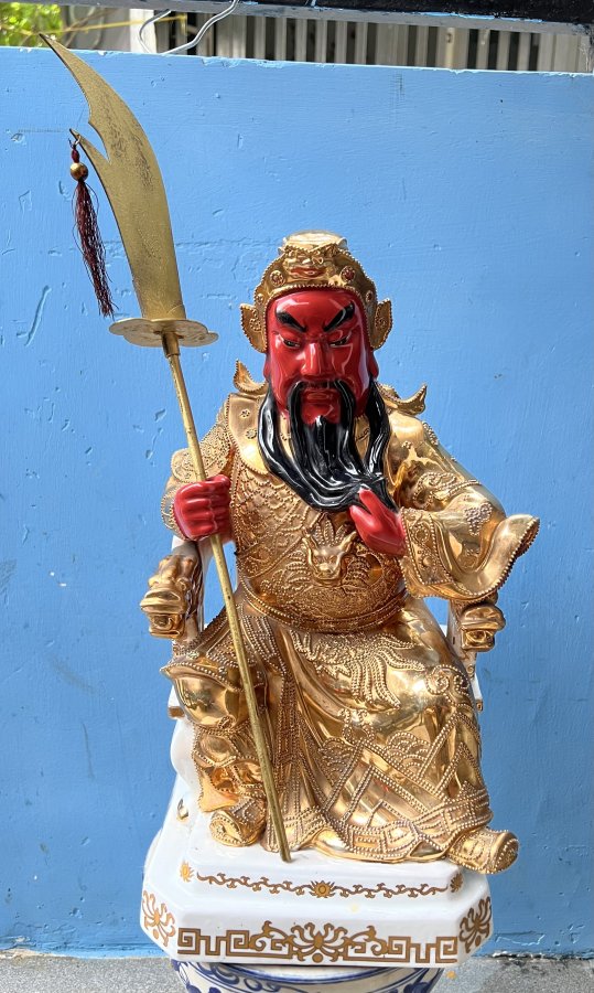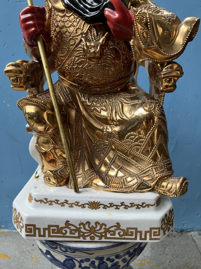 Ngài Quan Công Sứ dát vàng xưa Cao 43cm. Ngang 20cm Lành nguyên