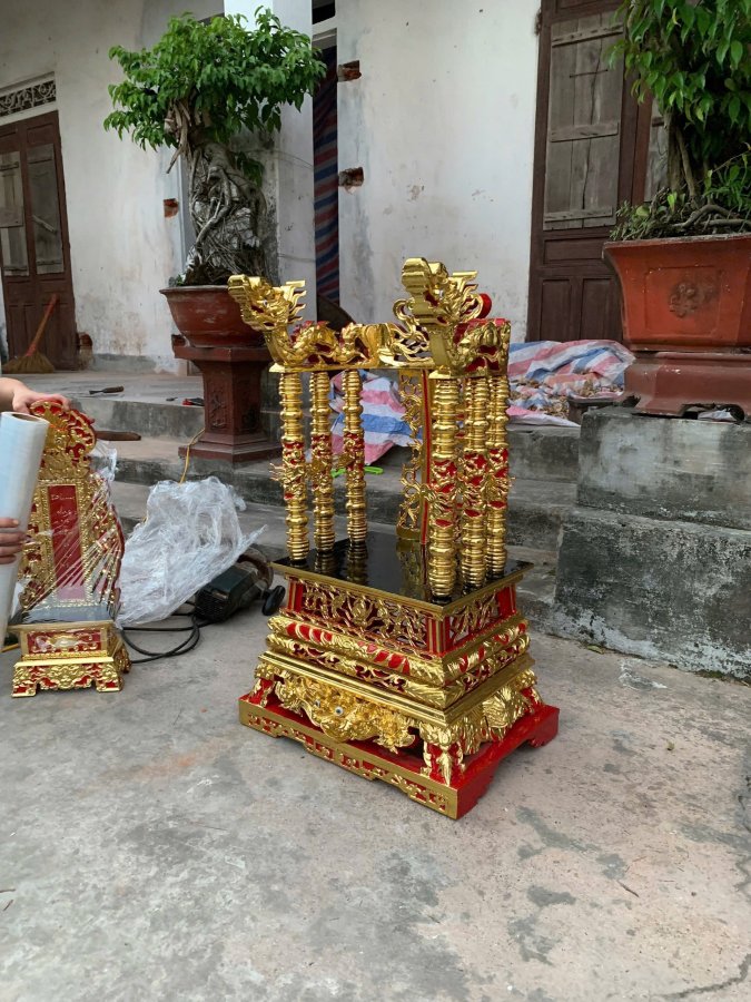Ngai thờ gỗ dổi thiếc vàng
