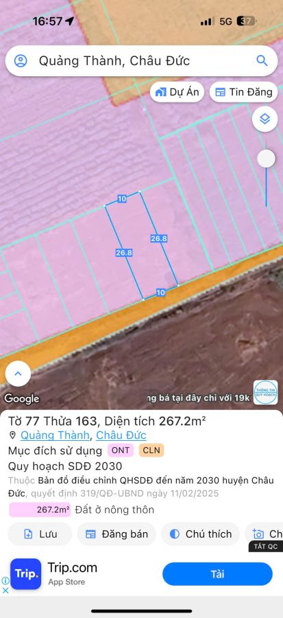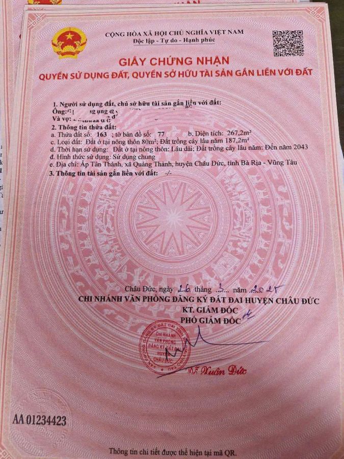 Ngang 10x26 có 80 thổ cư . Đường nhựa quảng thành châu đức .