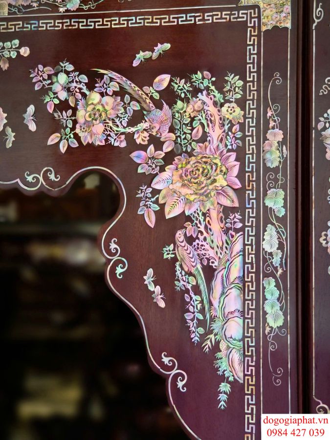 Chất liệu: gỗ gõ mật (gỗ gụ Việt Nam) cẩn ốc Singapore cao cấp