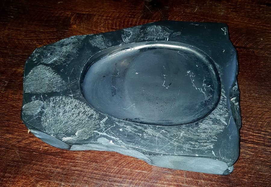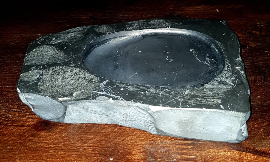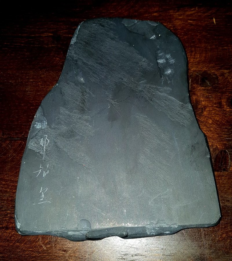 Nghiên mực đá một trong những trân phẩm quan trọng nhất trong bộ văn phòng thư bảo. Nghiên có chữ ký của tác giả. Kích thước dài 18cm. ngang 14cm. dầy 2.5cm. Đồ xưa được tạo tác thủ công hài hòa và sắc nét. GL1550k