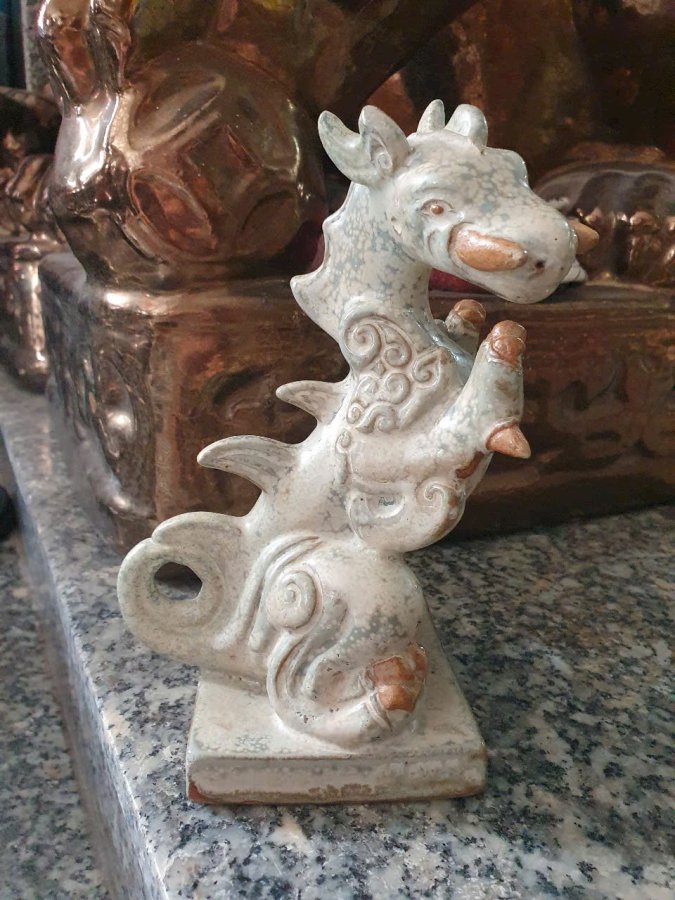 Ngọc Long gốm Trường Mỹ Nghệ Biên Hòa xưa.Triện chữ hán:"玉龙‘ 。Cao 19,5cm