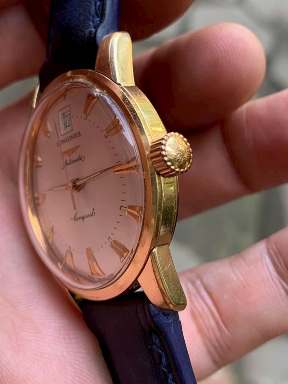 Đồng hồ Longines conquets auto vàng hồng 18k nguyên zin