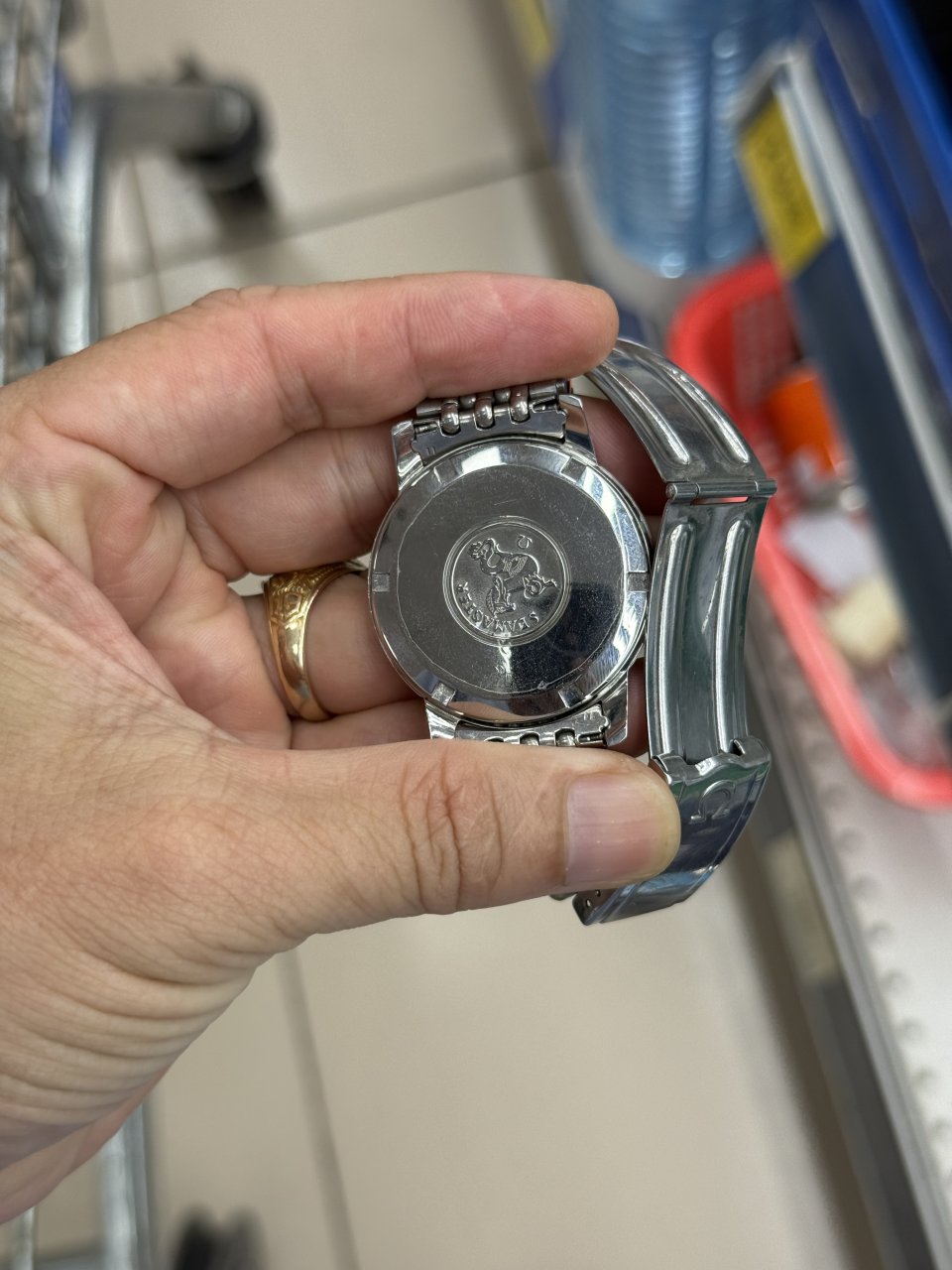 Vỏ thép tây mới đẹp bén cạnh, đáy logo ngựa biển sắc nétc 4 tay càng to đeo lên tay rất ok