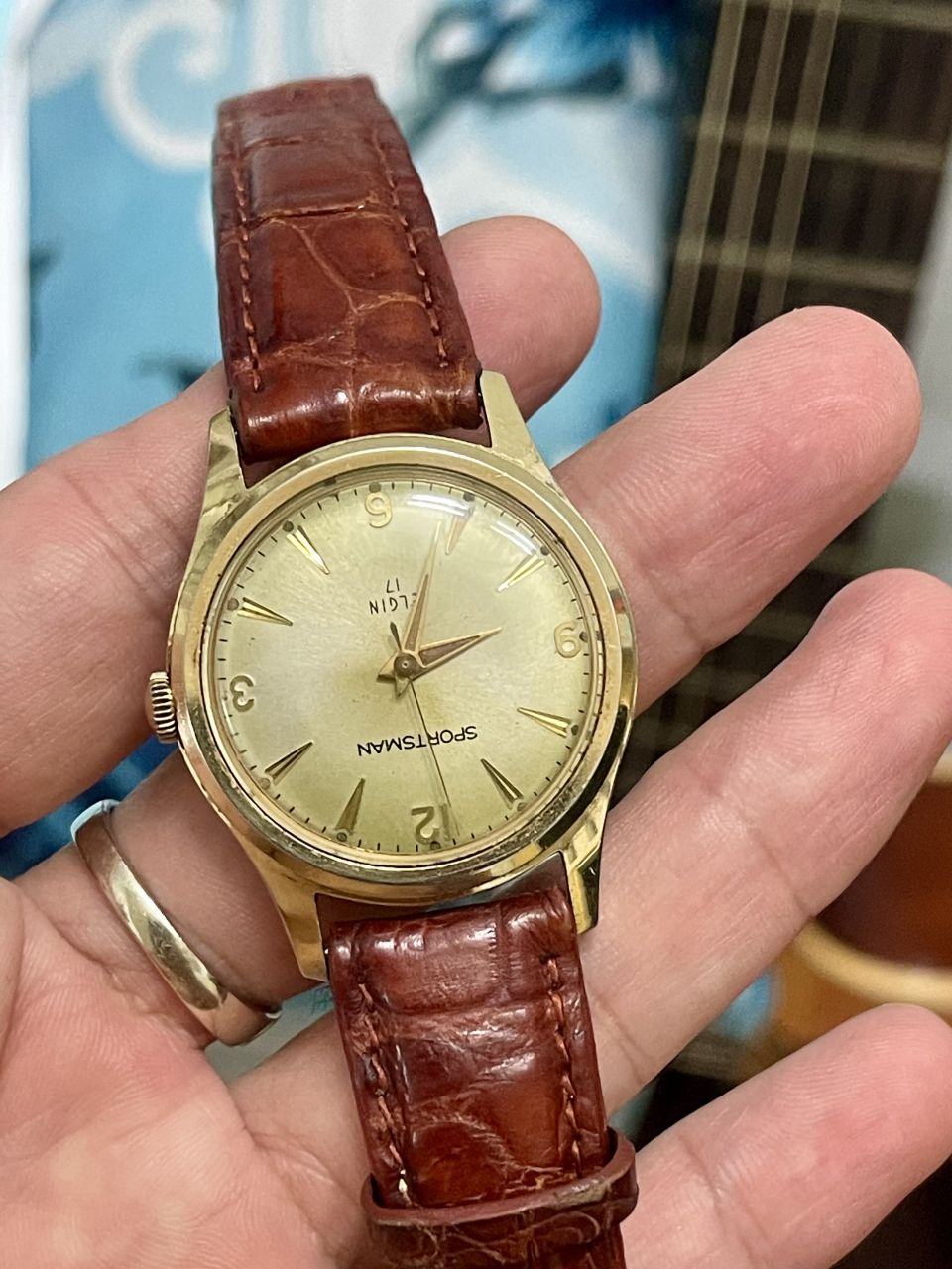 Đồng hồ SPORTSMAN cót tay Vỏ xi mạ vàng đáy inox Mặt số mở gà lên dầu đẹp Máy lên dây còn chạy chuẩn ok mới đẹp trử cod trên 30h Kim lá lúa, núm zin kg logo Size 33 chưa tính núm Dây cá sấu khoá linh kiện Giá giao lưu nhanh gọn: 500k Alo: 0974717097
