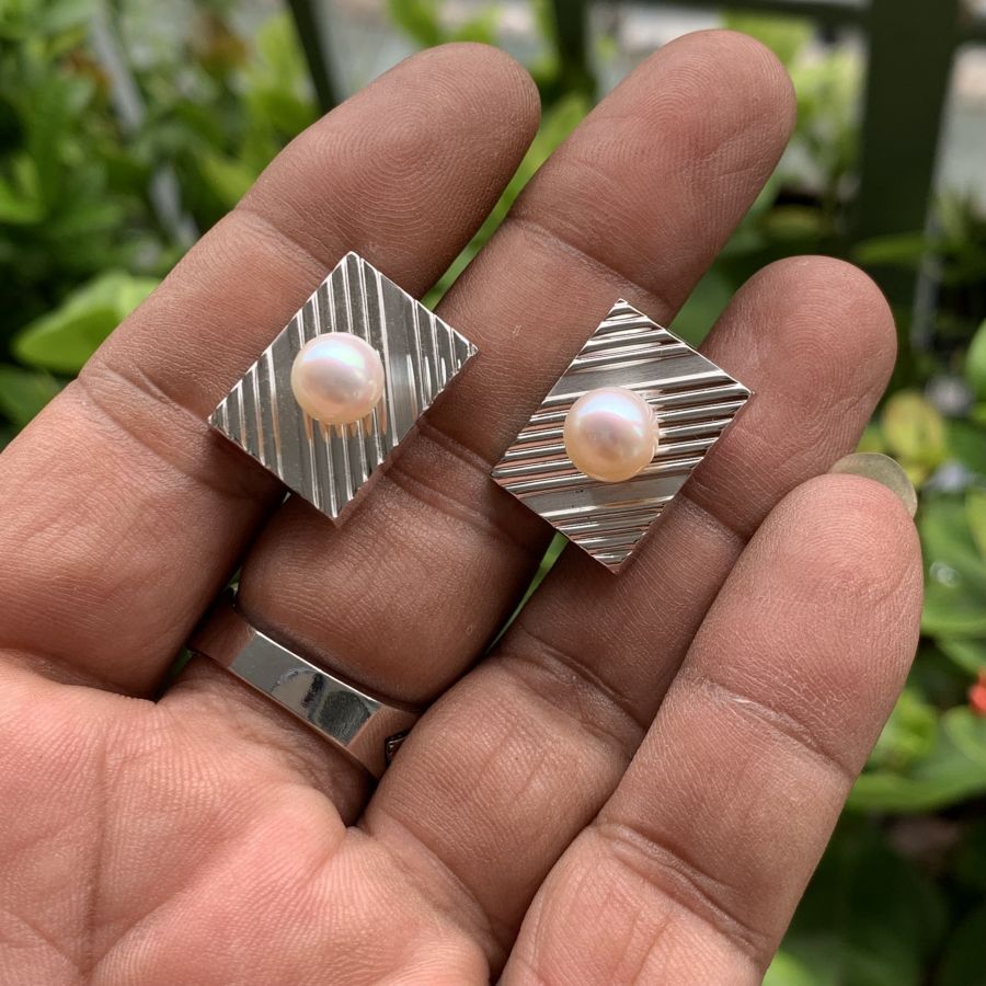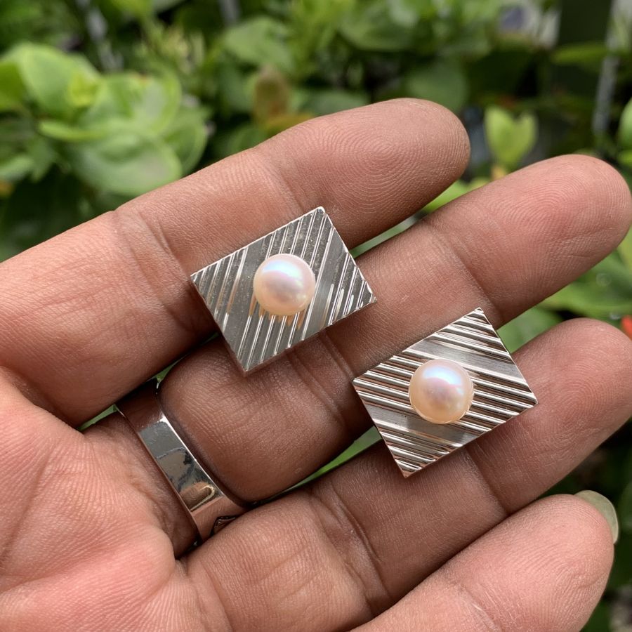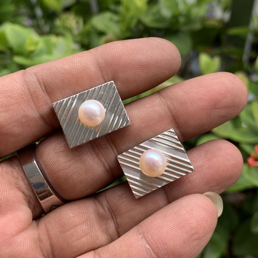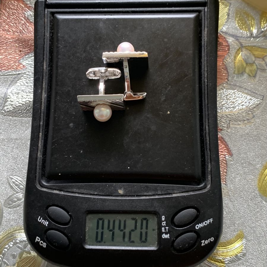 Nguyên bộ măng séc bằng Bạc khối đính ngọc trai thiên nhiên mới 99%