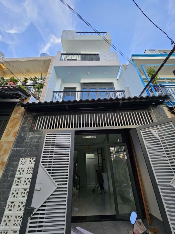 -1 trệt 3 lầu BTCT Mới keng, 4 pn, 3 wc, phòng Bếp, phòng khách, phòng thờ, sân thượng.-Hẻm 5m xe hơi vô nhà.-Nhà đẹp lung linh, nội thất đầy đủ, hệ thống điện thông minh, trang bị đầy đủ mọi thứ.-Sổ hồng vuông A4