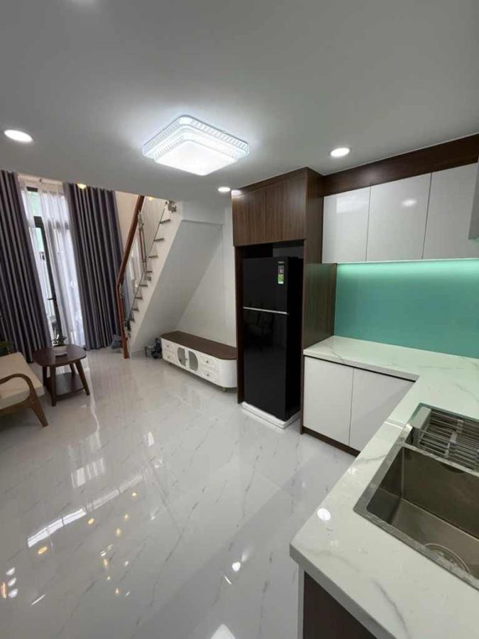 .Mô tả :+ Hẻm thông tứ tung ba gác tận nhà+ Diện tích : 58.7m2 –(3.50 nở hậu 6 x 10 )+ Kết cấu : 2 tầng gồm 1 trệt , 1 lửng+ Công năng : 2 PN , 2 WC , 1 phòng khách , 1 bếp Tiện ích nổi bật :+ Ngay trường Hồng Đức , Chợ Hoa Xuân Bến Bình Đông+ Xung quanh toàn nhà cao tầng , dân trí cao , đầy đủ không thiếu thứ gìPháp lý :+ SHR hoàn công đủ.