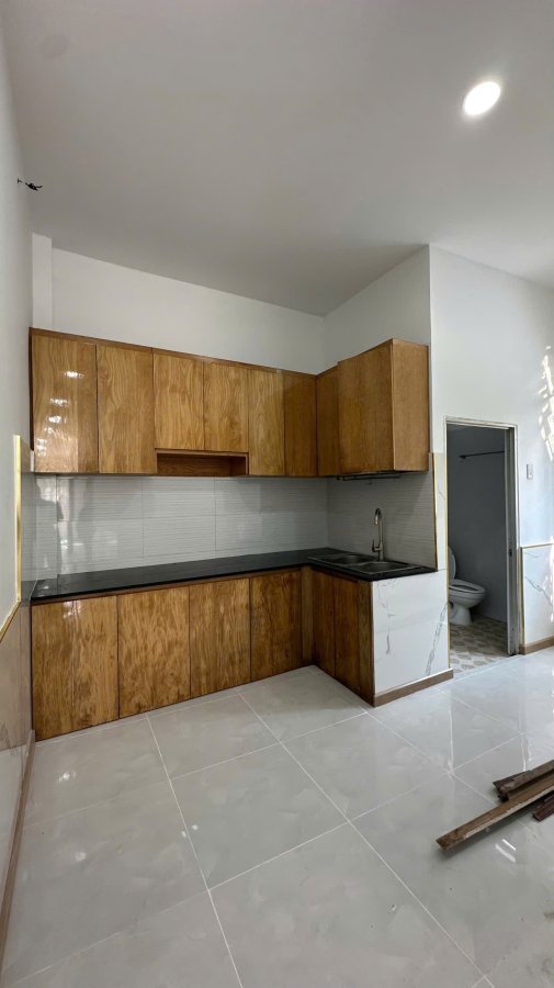 Nội thất: Đã trang bị sẵn tủ bếp gỗ cao cấp, hệ thống đèn led hiện đại, tường ốp gạch giả đá sang trọng.