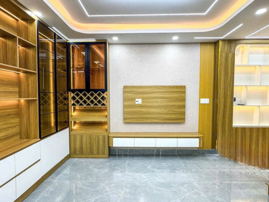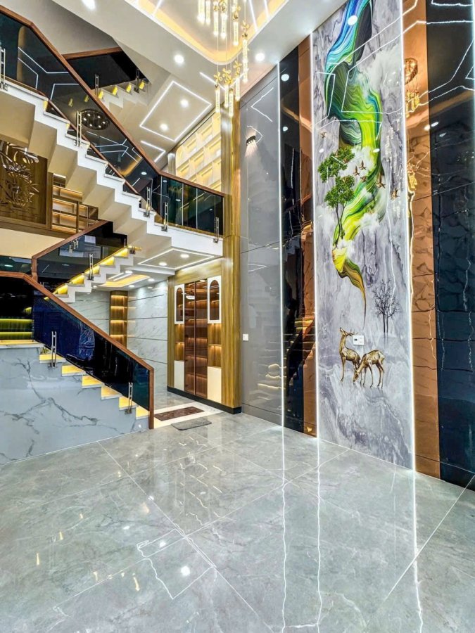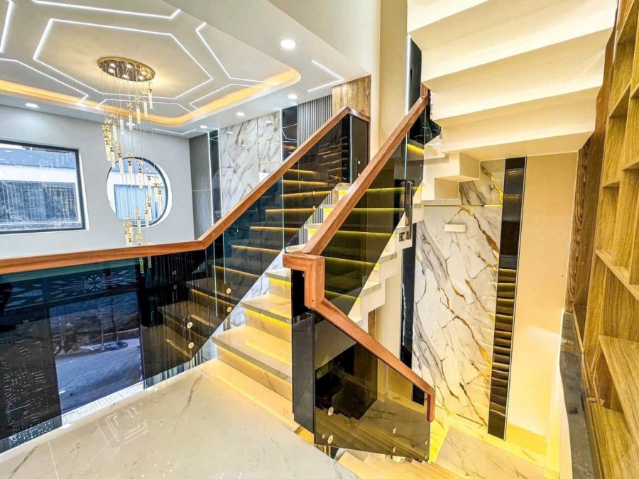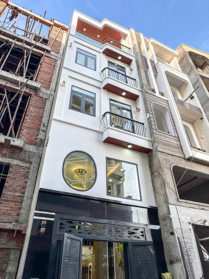Kết cấu nhà 1 trệt, 1 lững, 3 lầu, 4PN, 5wc, 1 phòng khách, thiết kế hiện đại