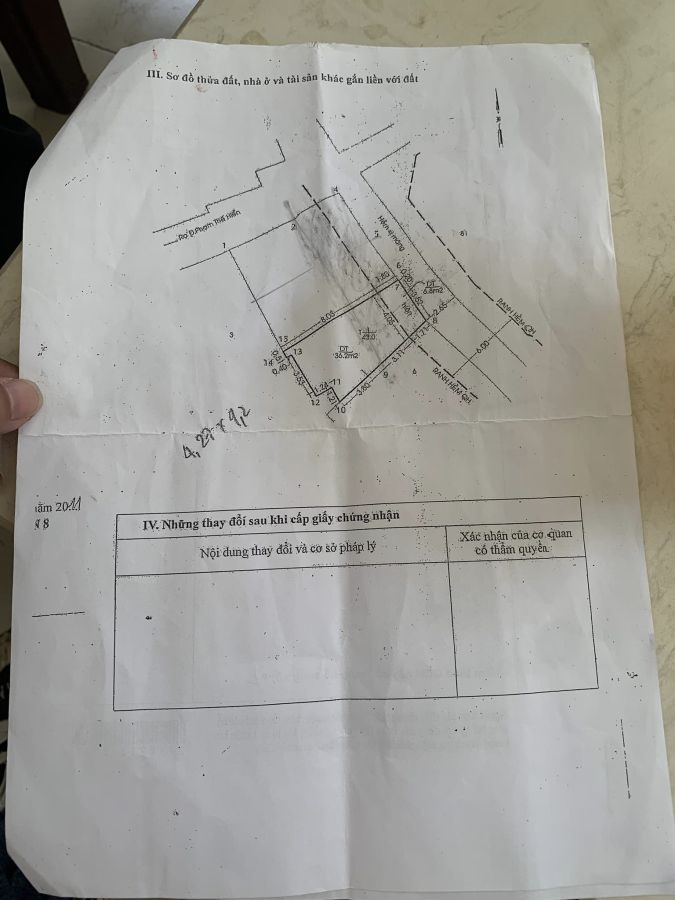 - Diện tích ĐẤT: 3,6m (nở hậu 5,25m) x 9,83m (công nhận 43m2 ĐẤT)