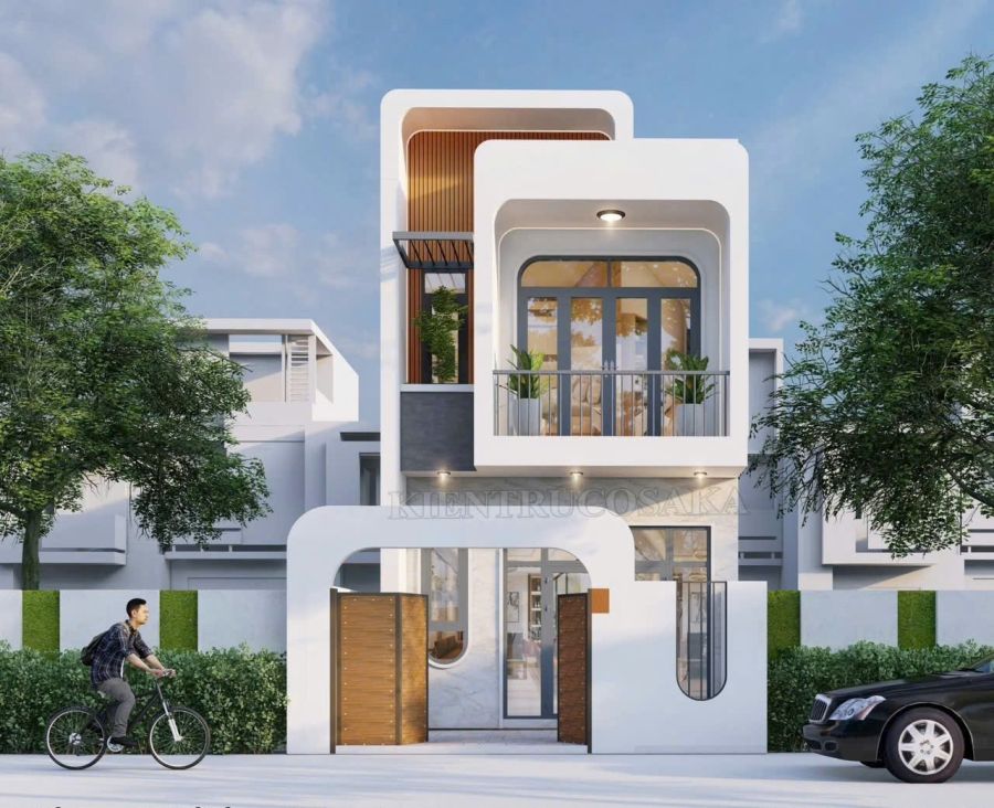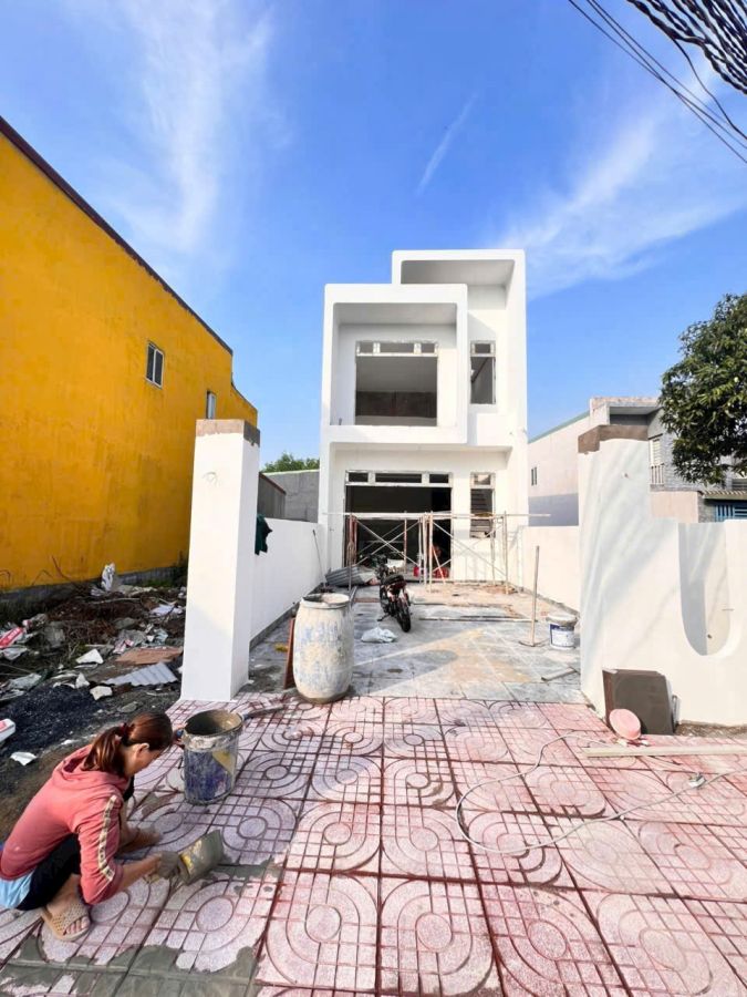 Diện tích . 5m x 23m. thiết kế 3 phòng ngủ sân xe hơi. Đường nhựa thông thoáng