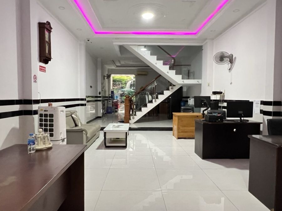 + Ngang 5.3x33.5, có lề 2m. 1 trệt 3 lầu, 7 phòng, 6WC.