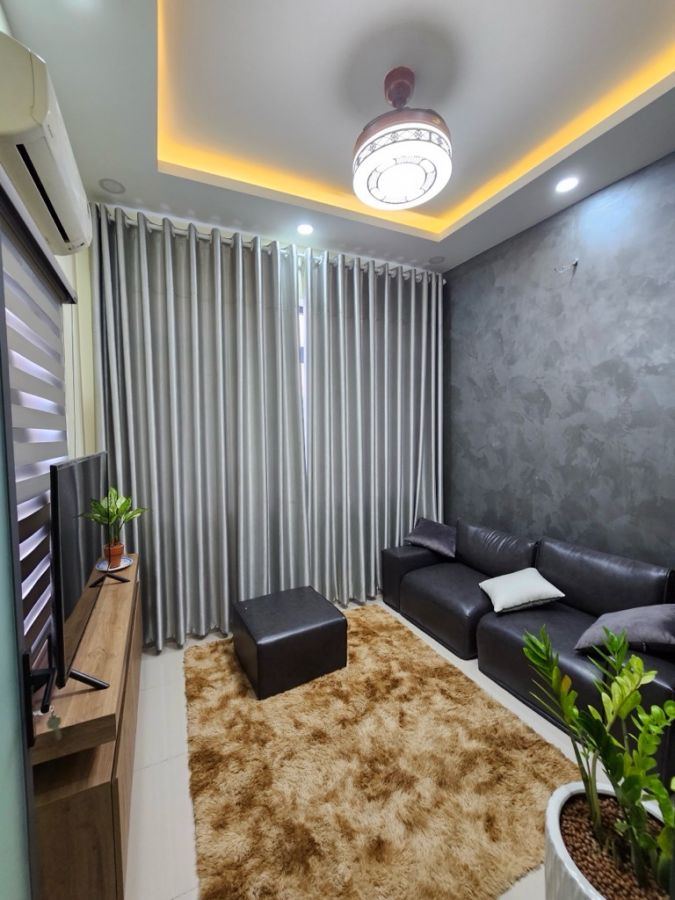 Nhà thiết kế hiện đại, thông minh, gồm có 1 phòng để xe máy, bếp, 1 pk lầu 1, 3 pn, 3 toilet