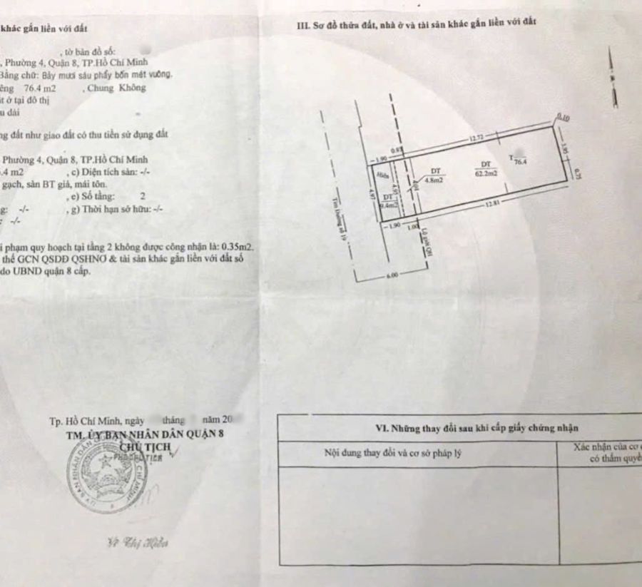 + Diện tích đất : 76.4m2 (5m x 15.71m); Diện tích sử dụng: 152.8m2