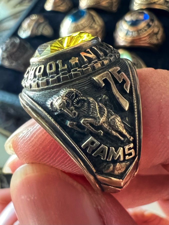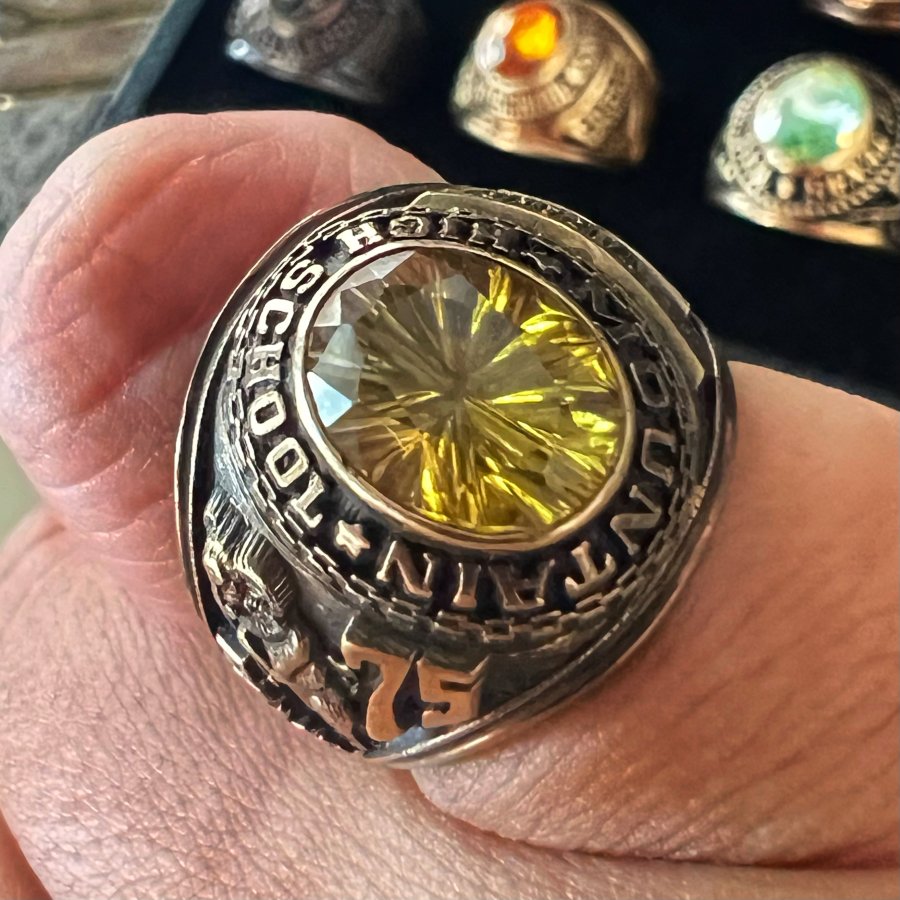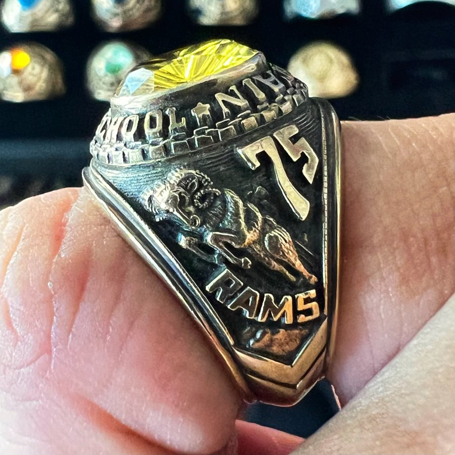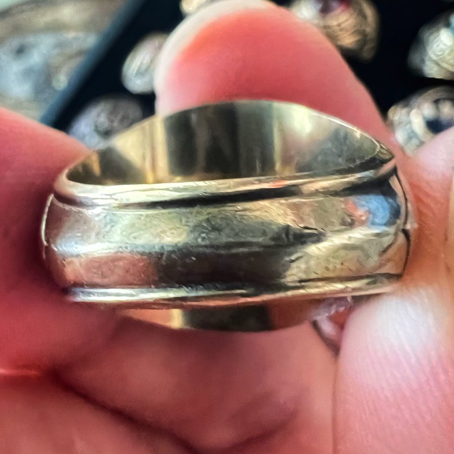 Nhẫn bá cấm vàng 7k năm 1975 mới tinh hoa văn sắc nét đá vàng tia đa giác rất đẹp, size 17.5-18mm, nặng 9.75gram (2.6 chỉ), giao thông 13tr9❤️ Thiên 0923.12.6789