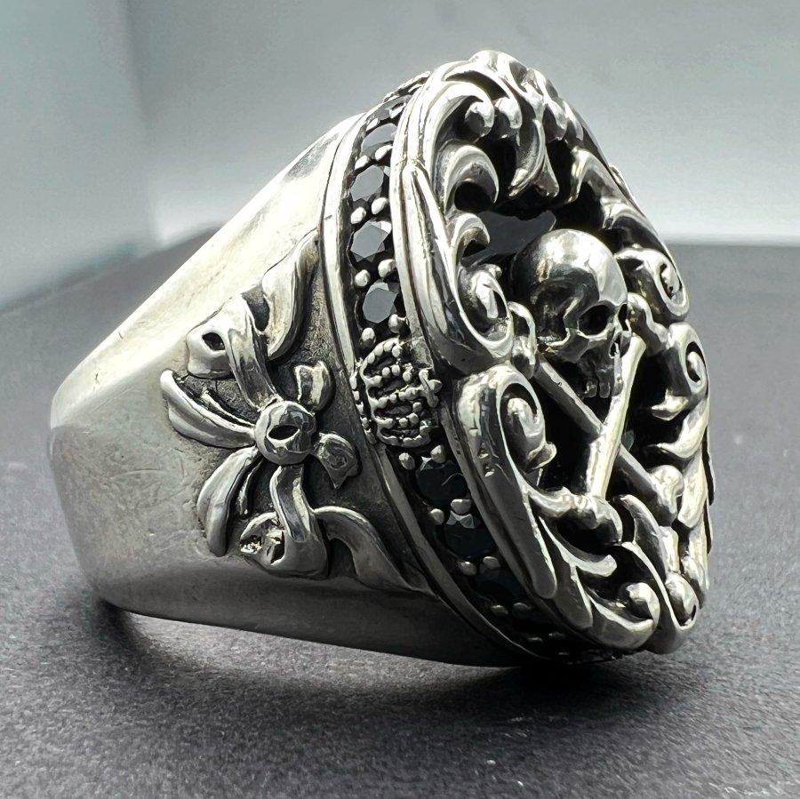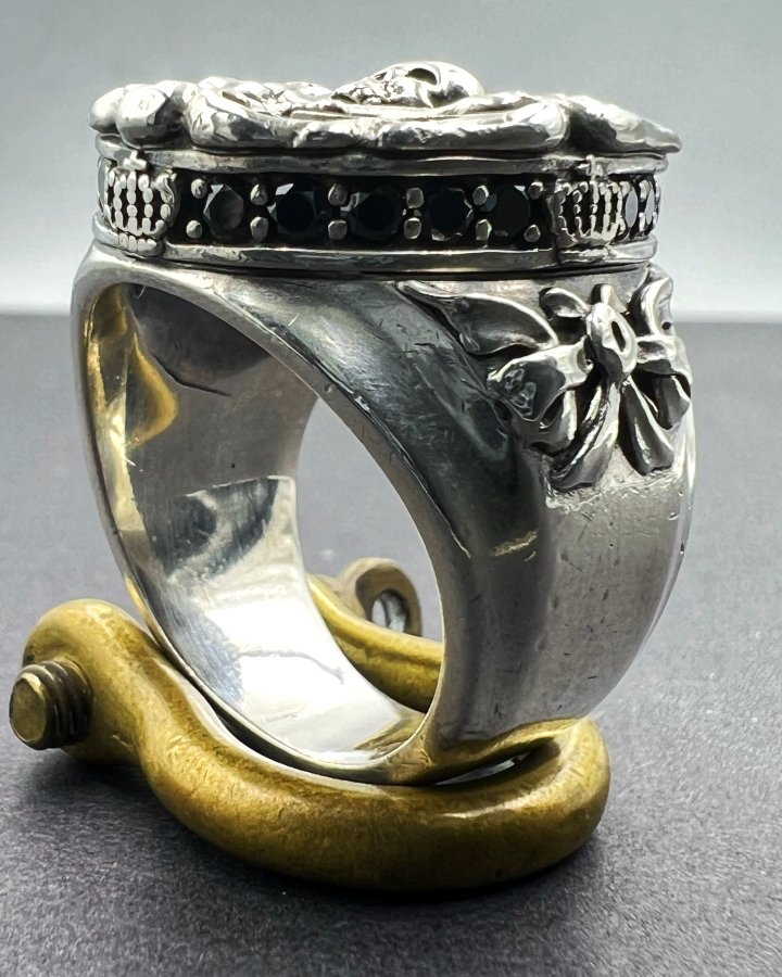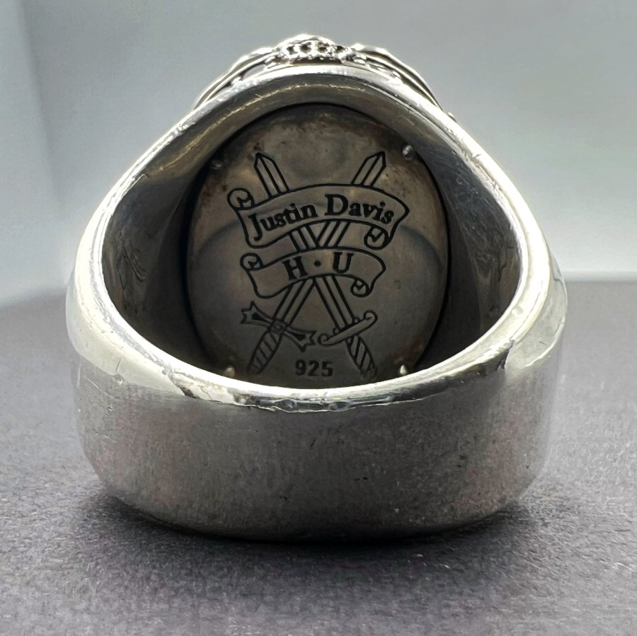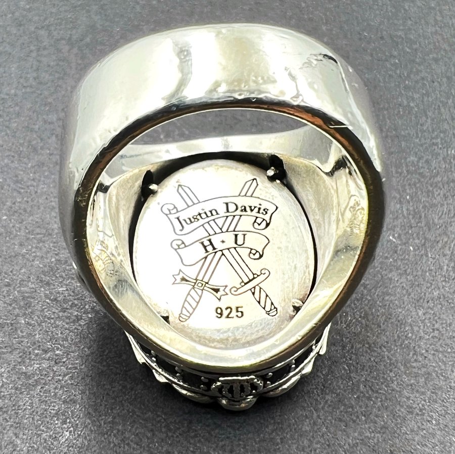 Nhẫn bạc 925 hiệu Justin Davis phôm bự hoa văn sắc nét đá đen đính logo và full soàn Cz rất đẹp, size 19mm - bản ngang 25mm, nặng 28.1gram (7.46 chỉ), giao thông 6tr3❤️ Thiên 0923.12.6789