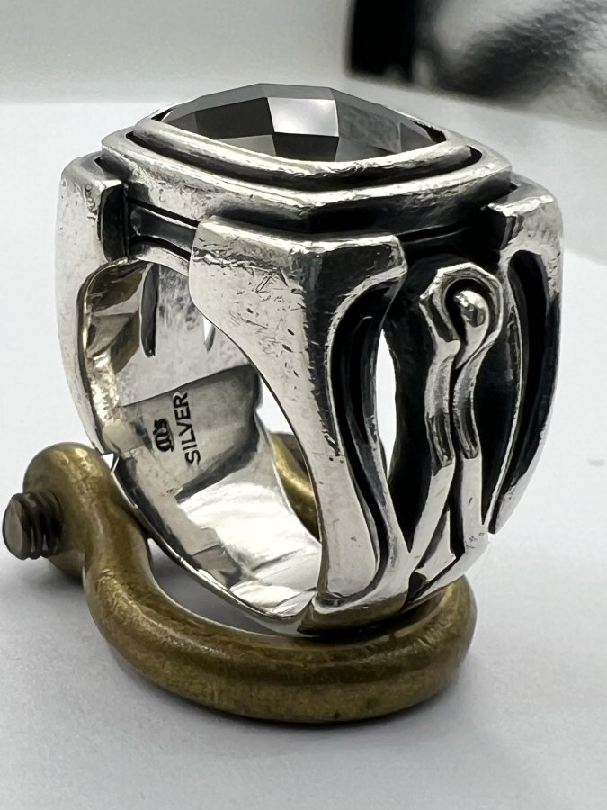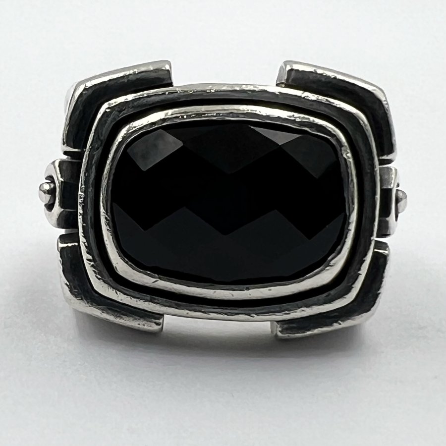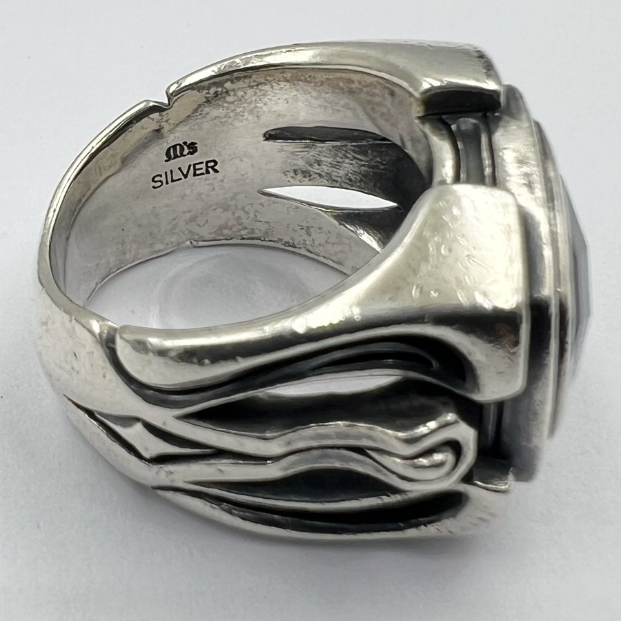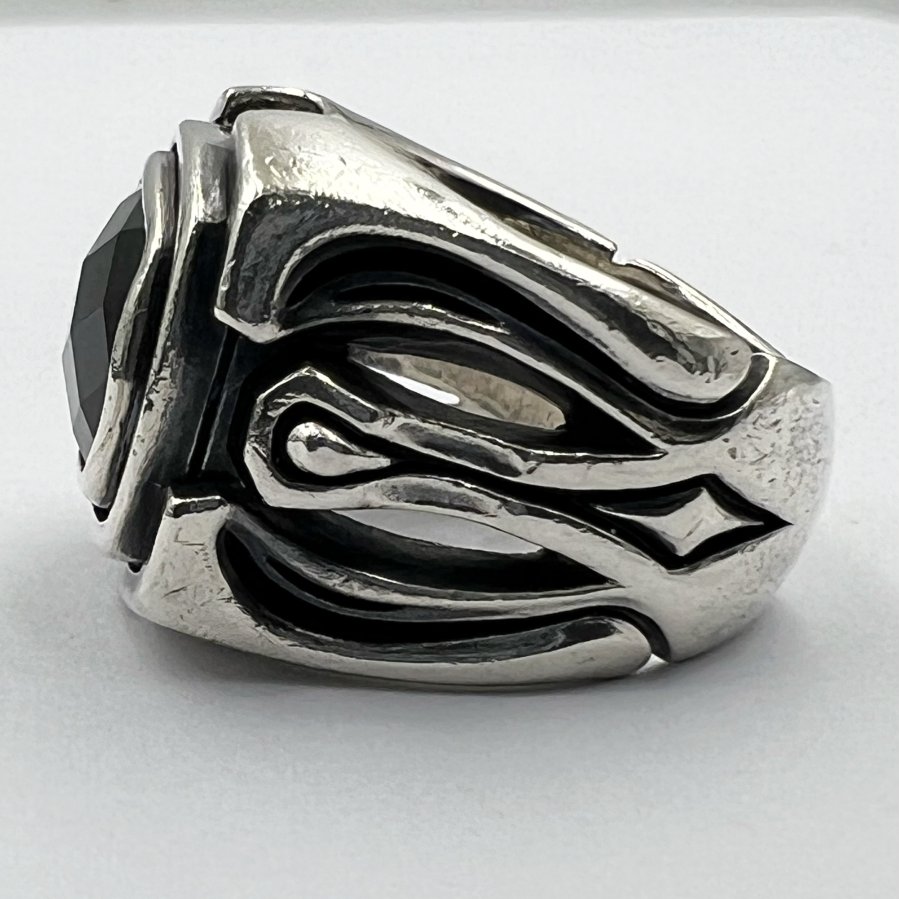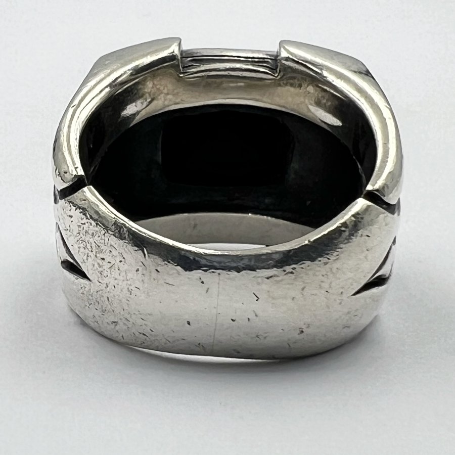 Nhẫn bạc 925 hiệu Ms Collection phôm bự hoa văn sắc nét đính đá onyx đen đa giác rất đẹp, size 18mm - bản ngang 17mm, nặng 19.5gram (5.2 chỉ), giao thông 3tr9❤️ Thiên 0923.12.6789