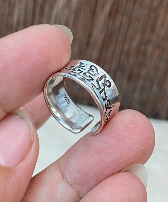 Nhẫn bạc 925 khắc chữ Phạn, form hở đẹp sang