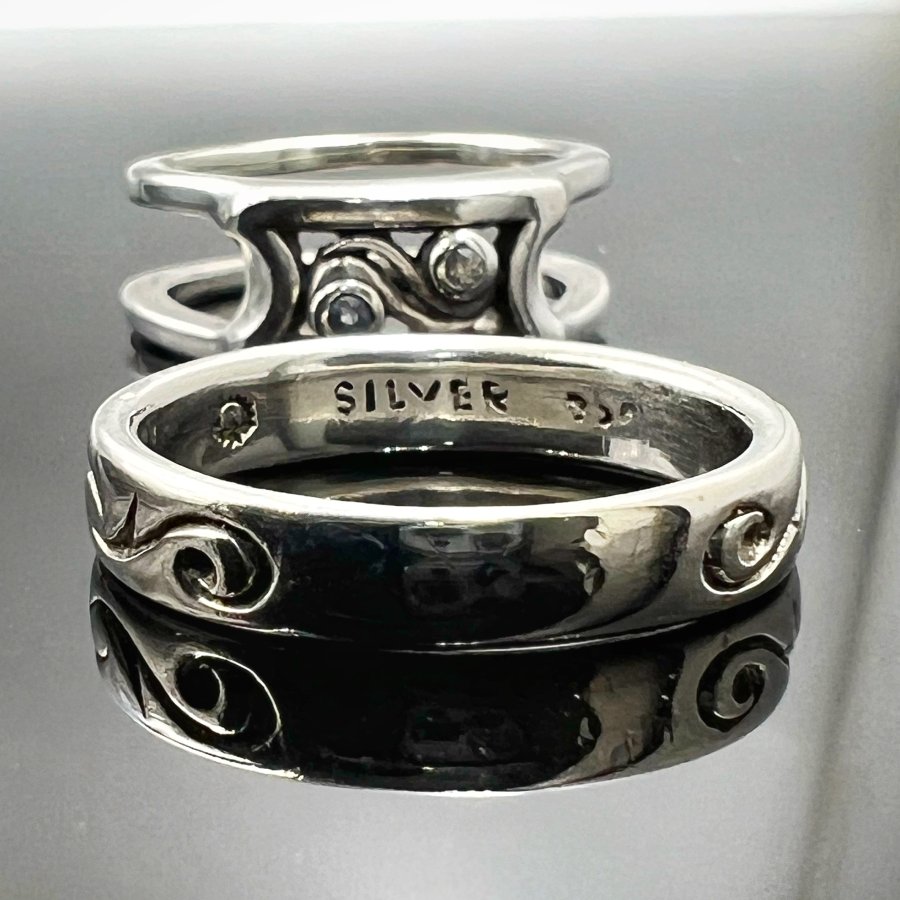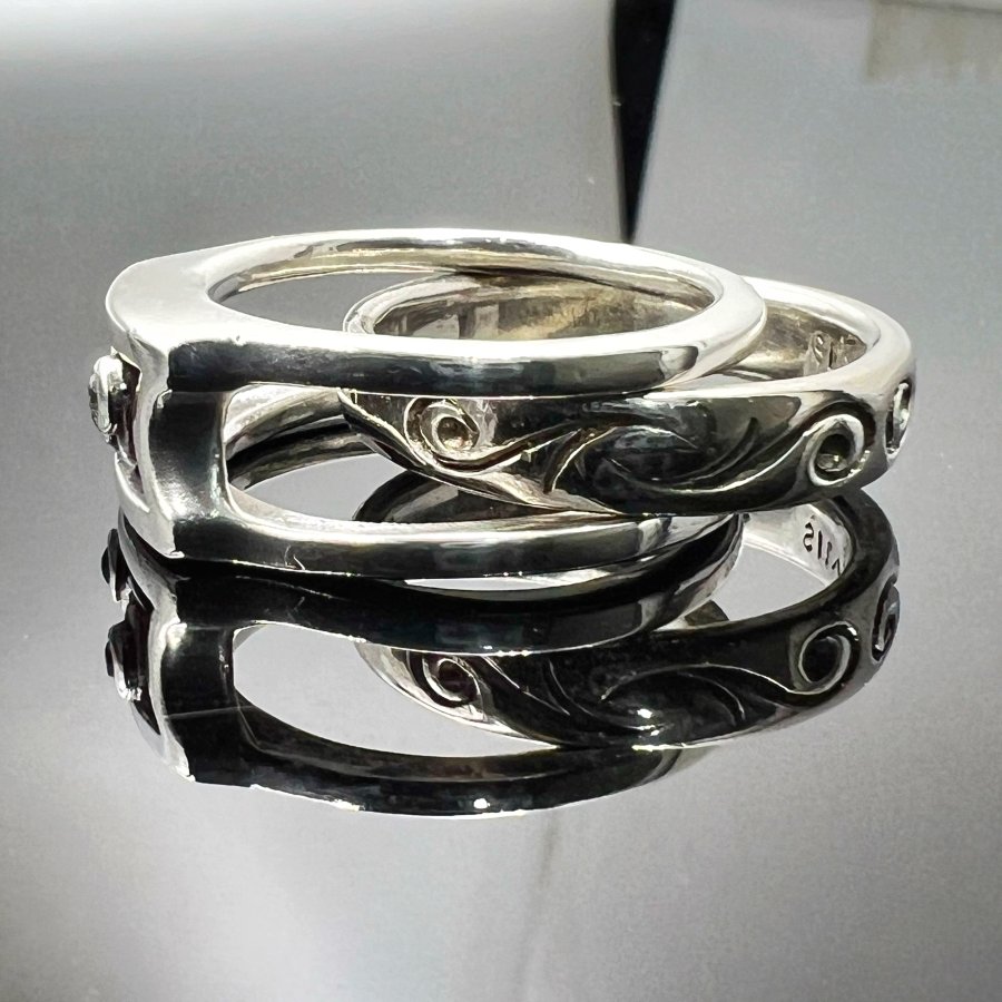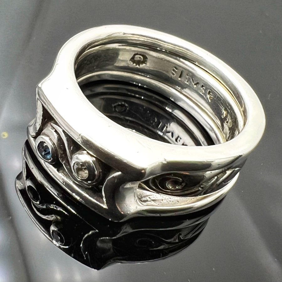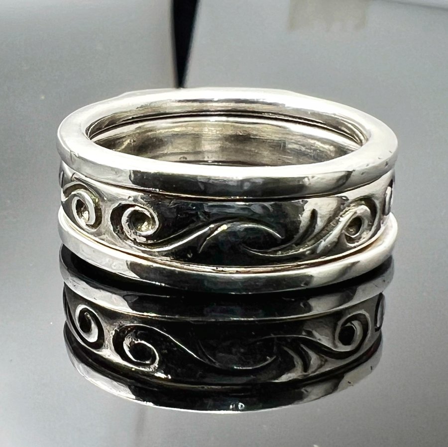 Nhẫn bạc 925 Nhật mới tinh hoa văn sắc nét đính soàn thiên nhiên 1.2li rất đẹp, kiểu 2 chiếc lồng vào nhau có thể tách rời, Size 19mm - bản ngang 9mm, nặng 13.2gram (3.52 chỉ), giao thông 2tr4❤️ Thiên 0923.12.6789