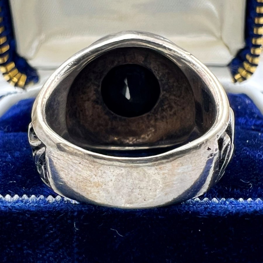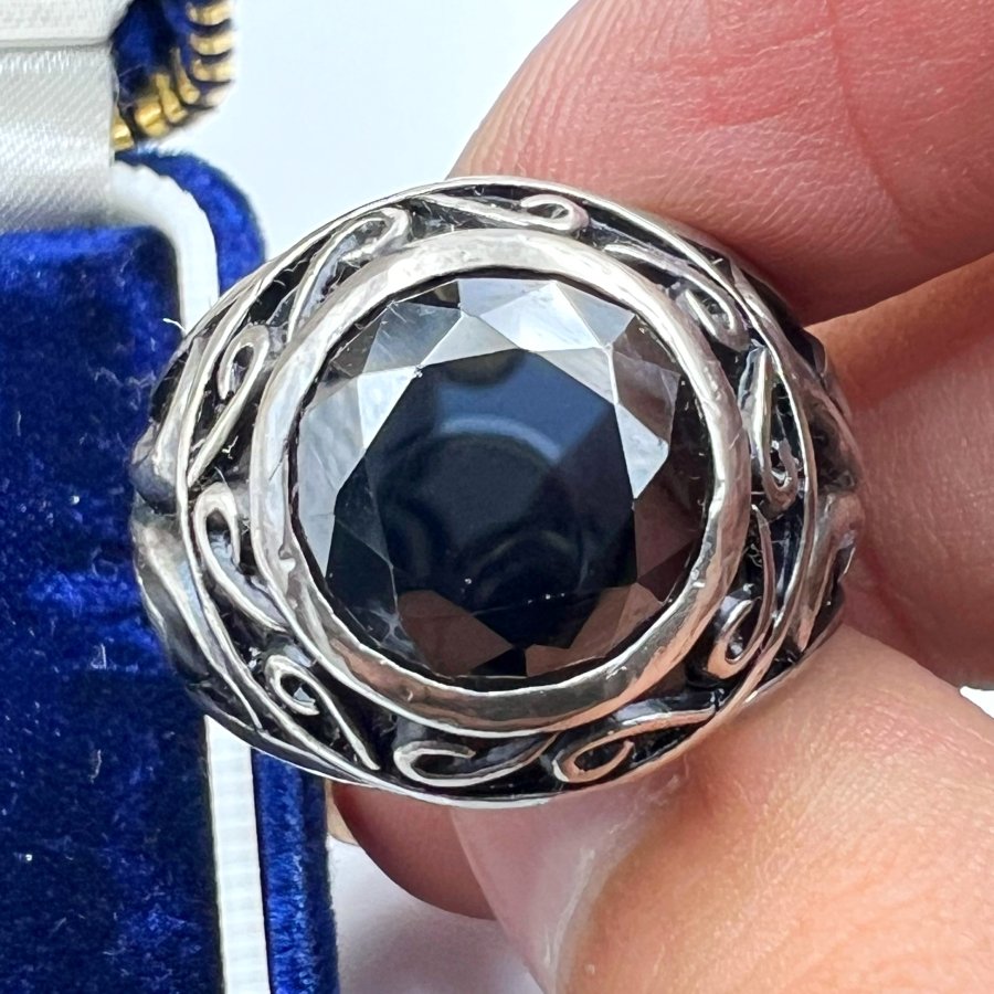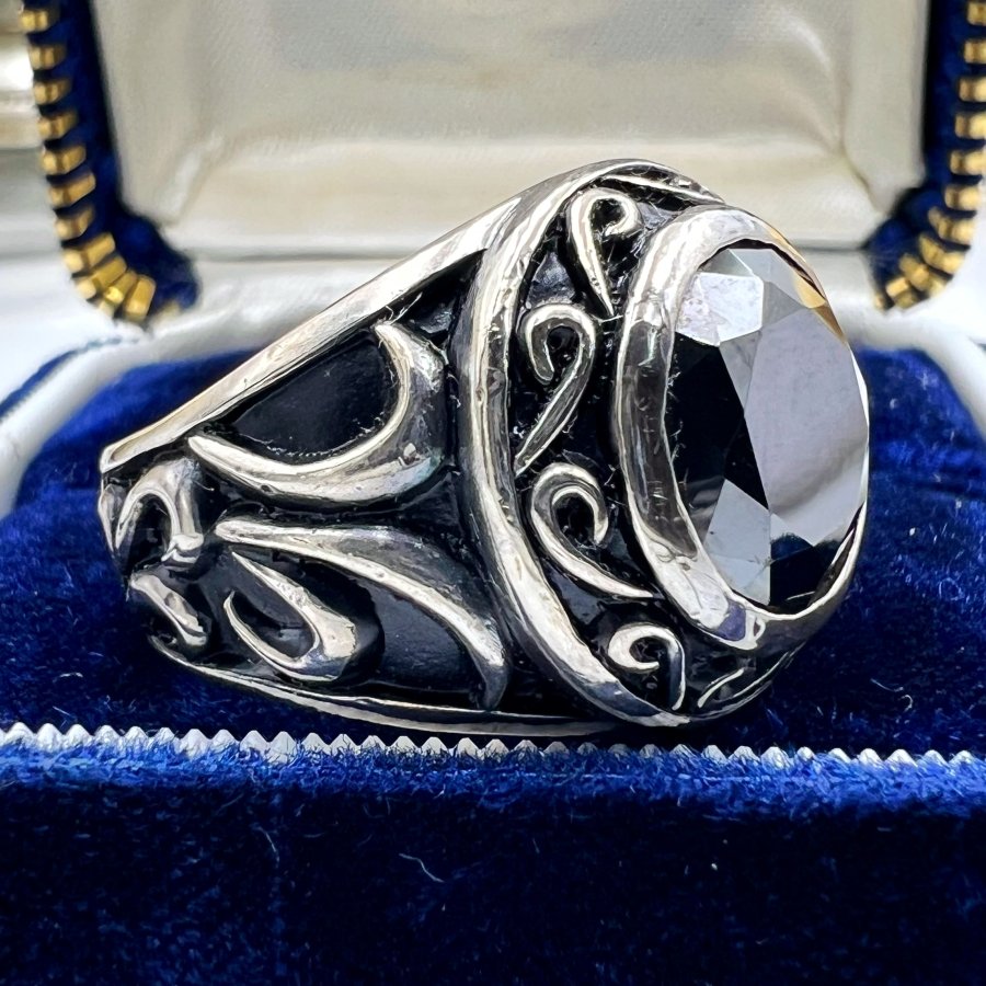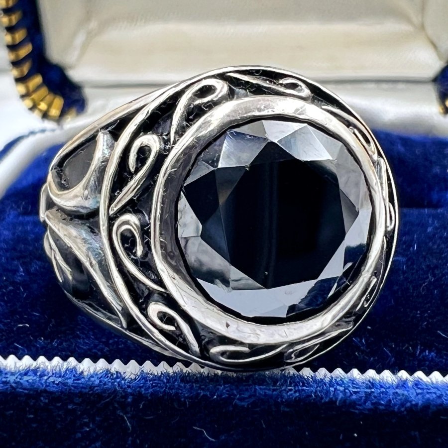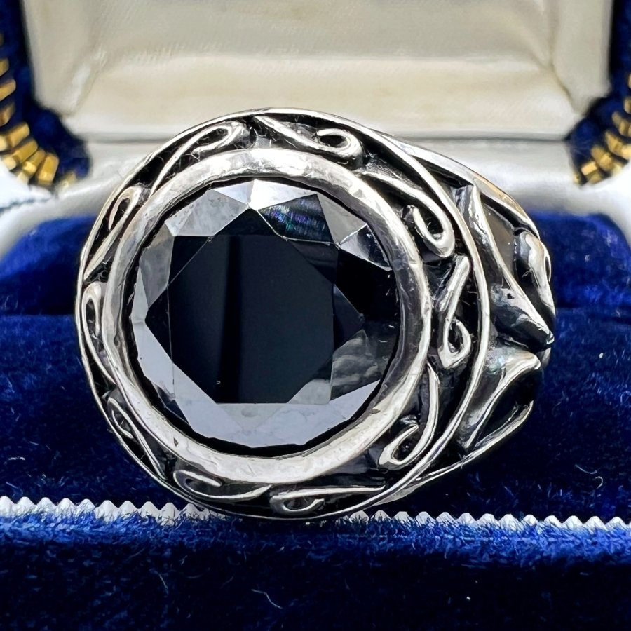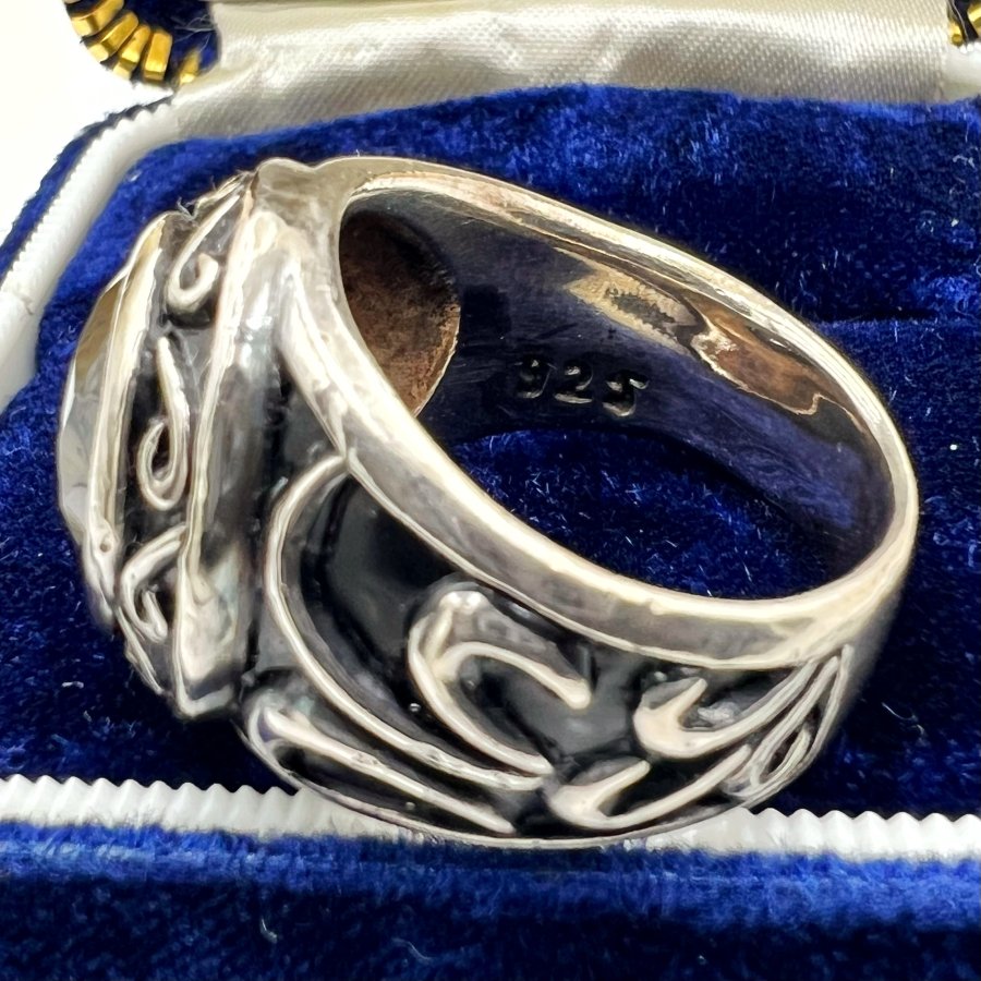 Nhẫn bạc 925 Nhật phôm bự hoa văn sắc nét đính đá đen đa giác rất đẹp, size 19mm - bản ngang 19mm, nặng 19.79gram (5.28 chỉ), giao thông 3tr2❤️ Thiên 0923.12.6789