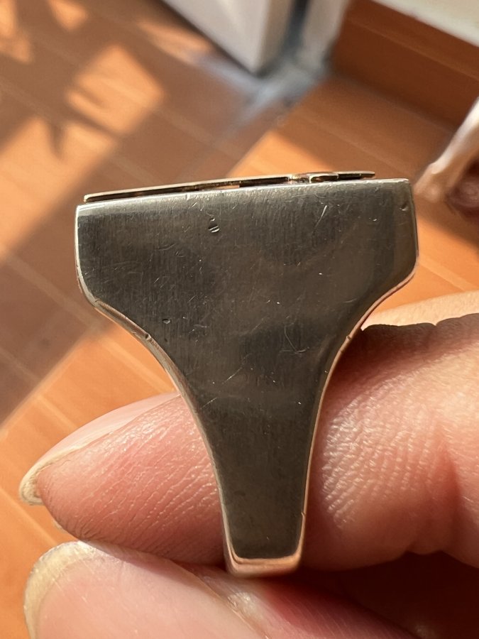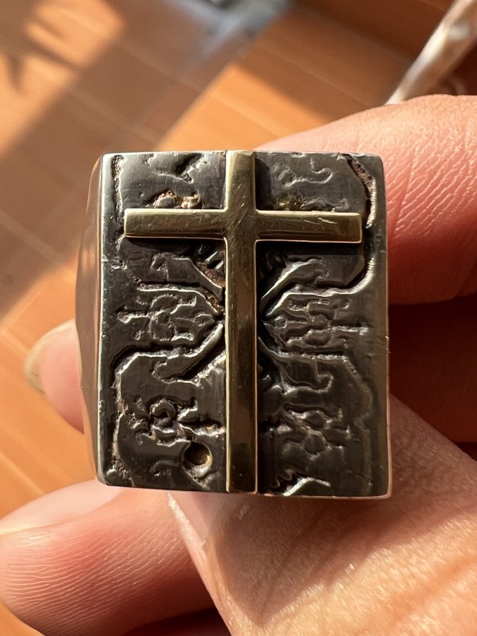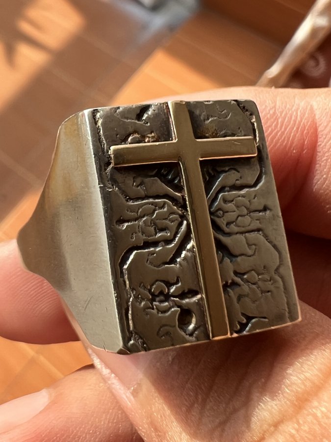 Nhẫn bạc 925 ốp logo thánh giá vàng 10k isarel phôm bự hoa văn sắc nét rất đẹp, size 19.5mm - bản ngang 21mm, nặng 13.9gram (3.71 chỉ), giao thông 3tr9❤️ Thiên 0923.12.6789