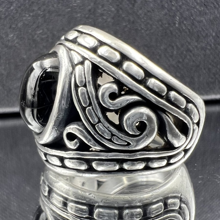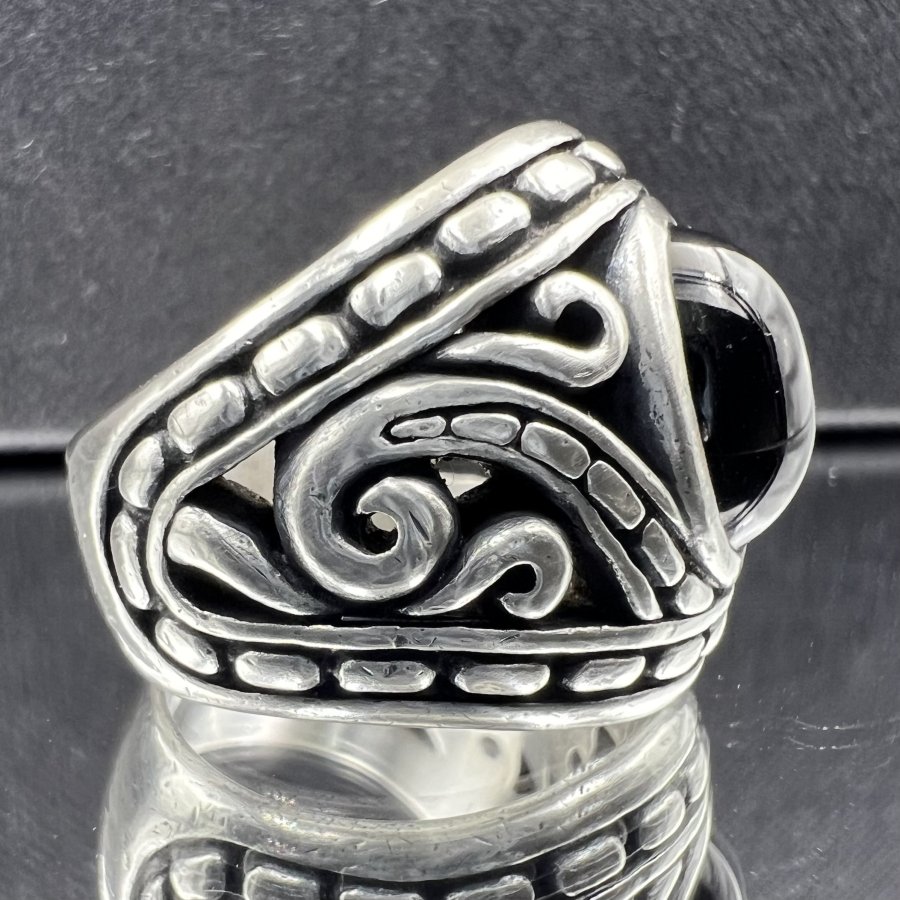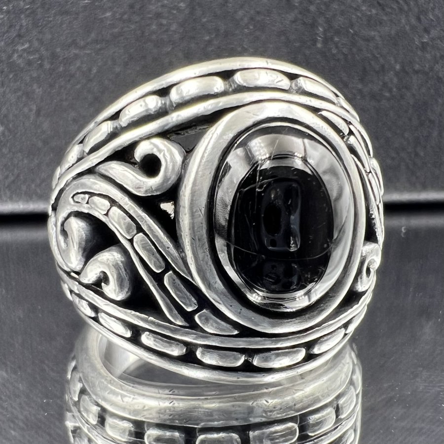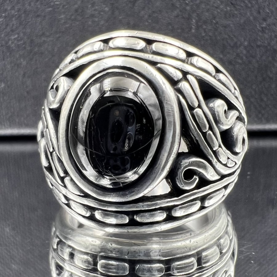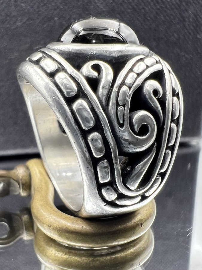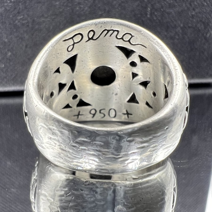 Nhẫn bạc 950 hiệu Dema phôm bự hoa văn sắc nét đính đá đen có sao rất đẹp, size 19mm - bản ngang 21mm, nặng 22gram (5.86 chỉ), giao thông 3tr5❤️ Thiên 0923.12.6789