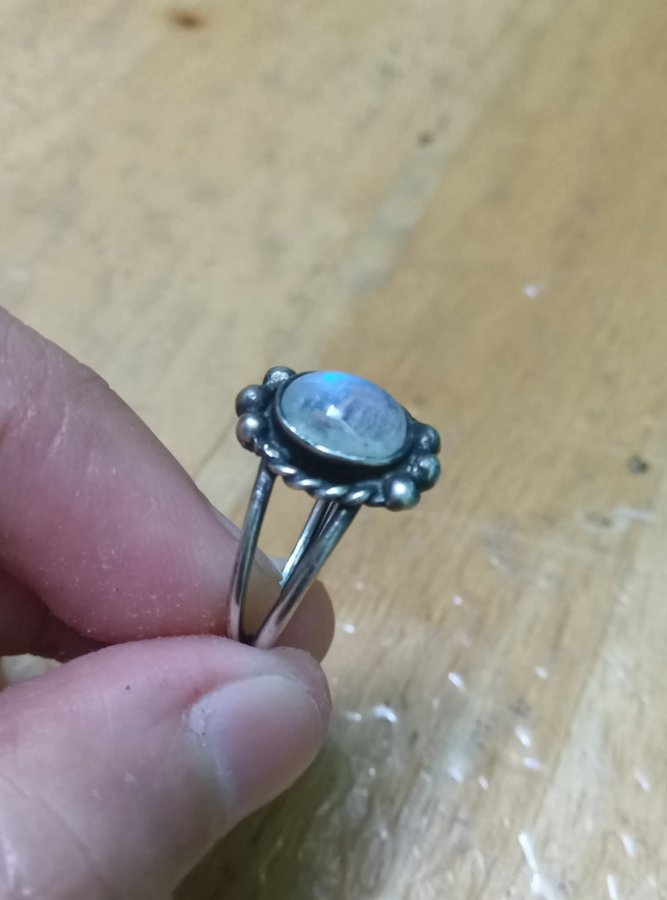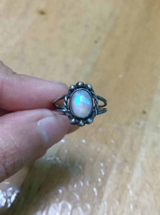 Nhẫn bạc đá Moonstone kiểu dáng cổ điển. Tiệm bao bạc, đá lửa xanh siêu đẹp dành cho ni tay 17mm đổ lại ạ 🥰