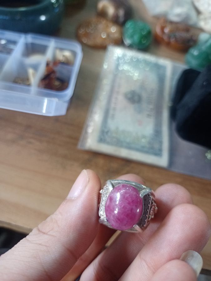 Nhẫn bạc đính viên ruby Ni 18mm Lên tay sang trọng lắm nhé. Giá 700k