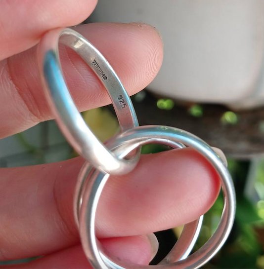 Nhẫn bạc / Mặt dây chuyền bạc hàng hiệu, 3 chiếc lồng vào nhau cực sang