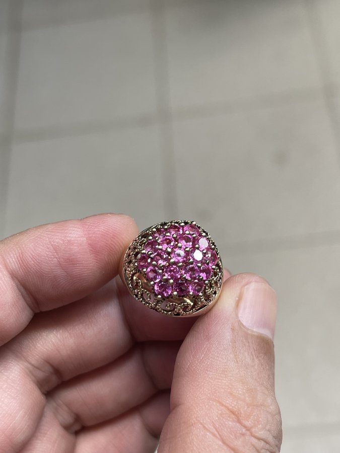 Nhẫn bạc ngoại 925 bọc vàng 18k, đính 19v saphire hồng 3,5ly mài giác rất đẹp Ni 17 , lh 0938968896 call or zalo