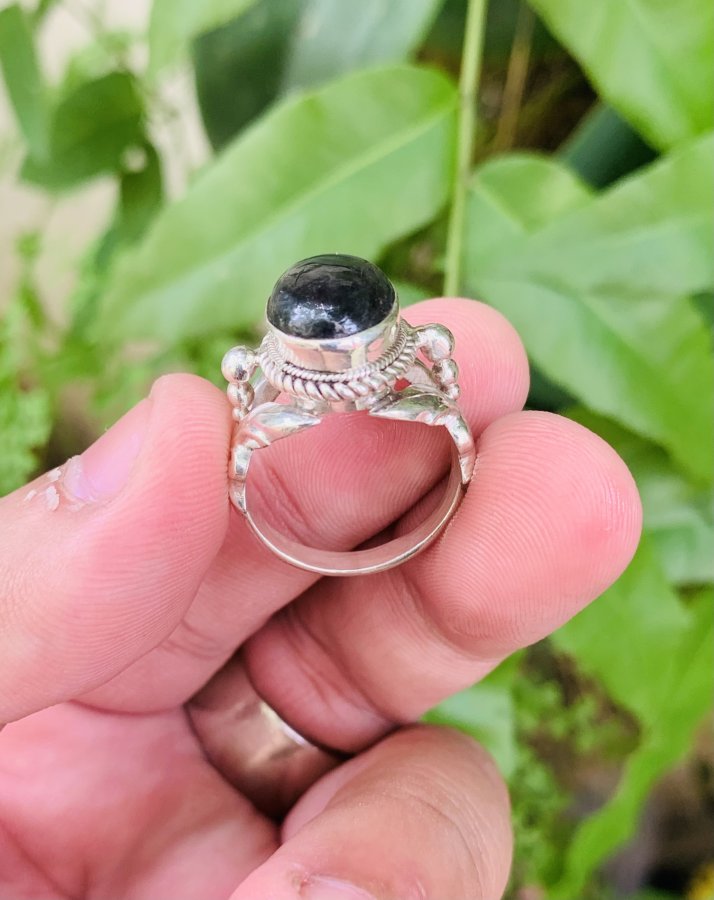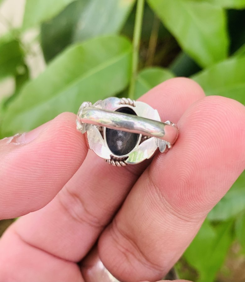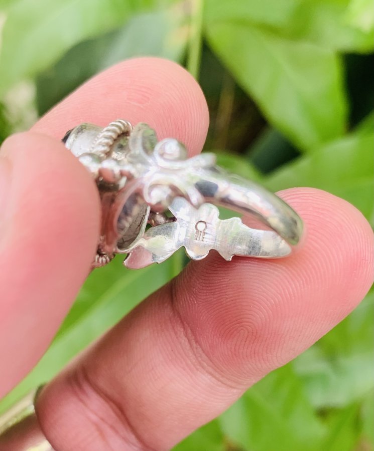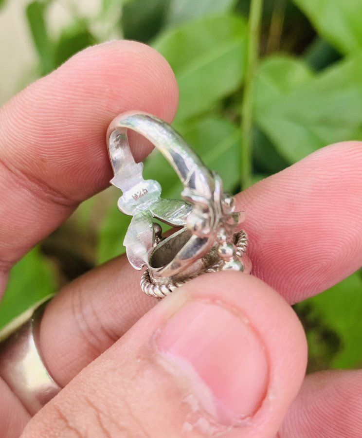 NHẪN BẠC NGOẠI ĐÁ SAPHIA PHOM HOA LÁ HẸ..