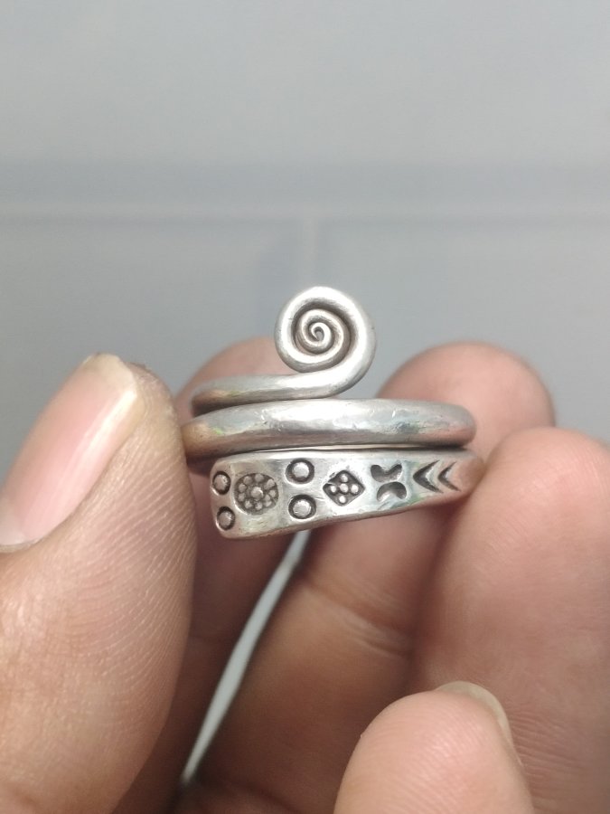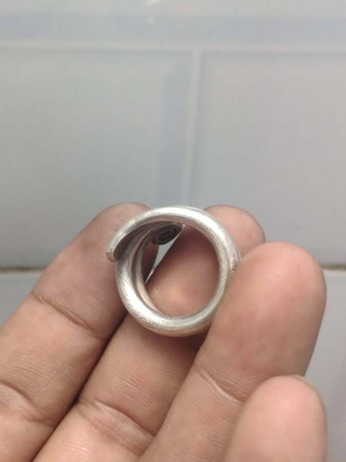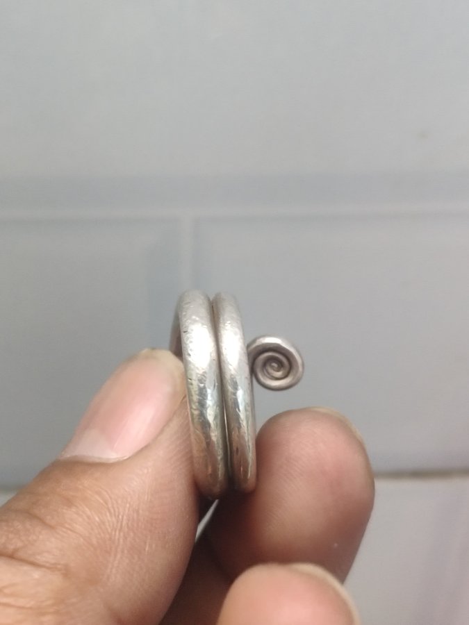 nhẫn bạc ngoại hàng thủ công độc lạ. chuẩn bạc. nặng 2,95 chỉ. dạng kiểu xoắn thâu vào nớ ra ok nhé. ae sưu tầm chơi lh nhé