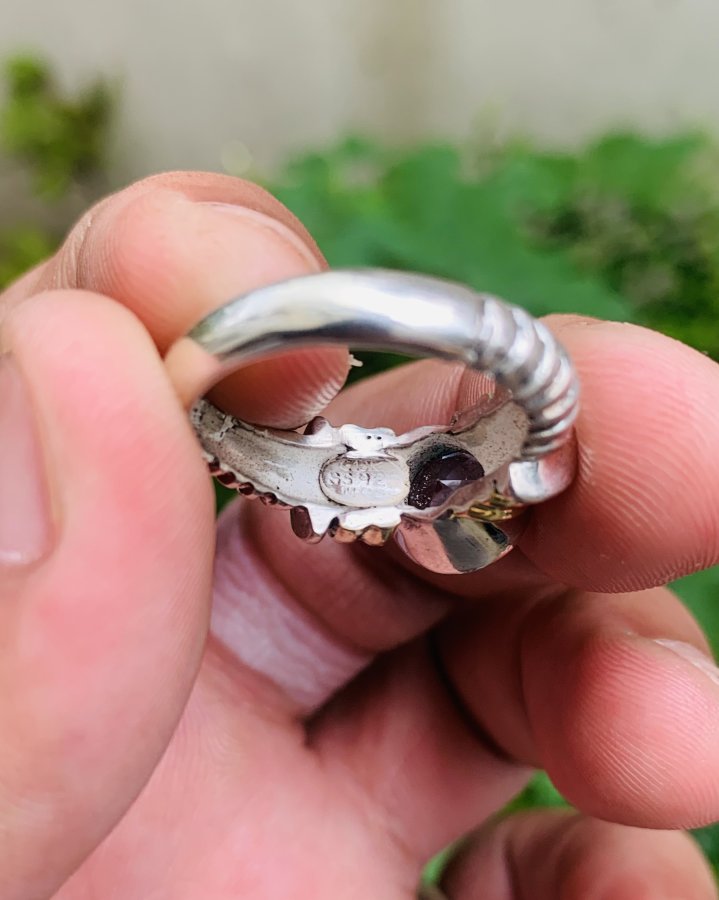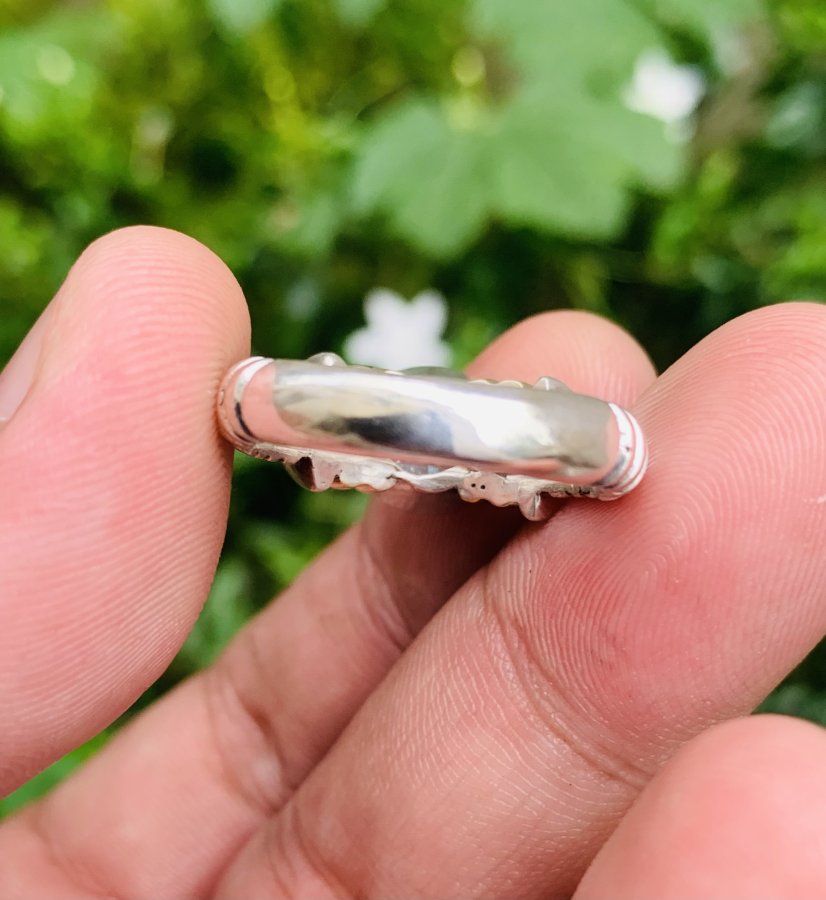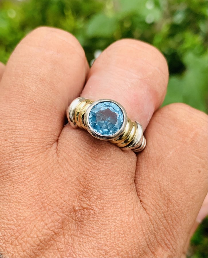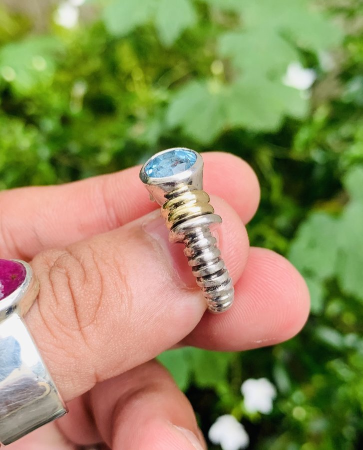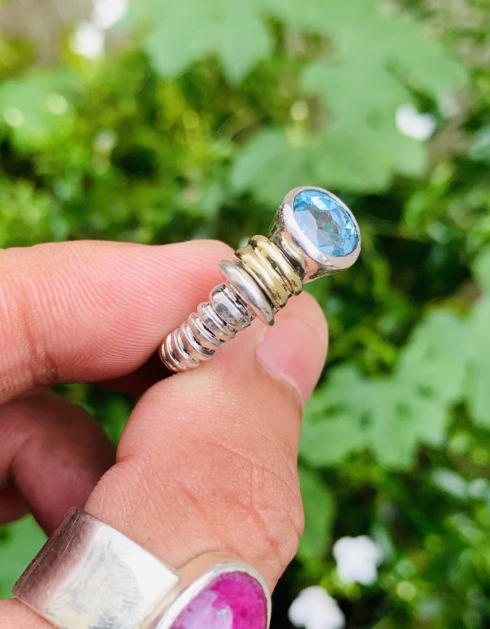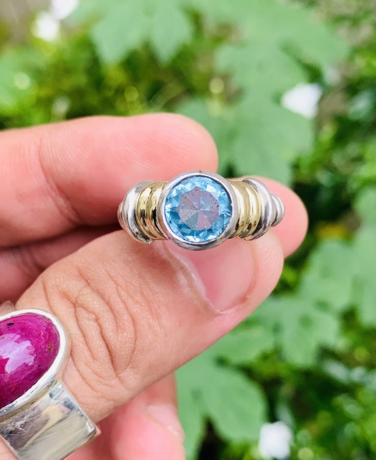 Nhẫn bạc ngoại đá topaz, mộc triện G18k.