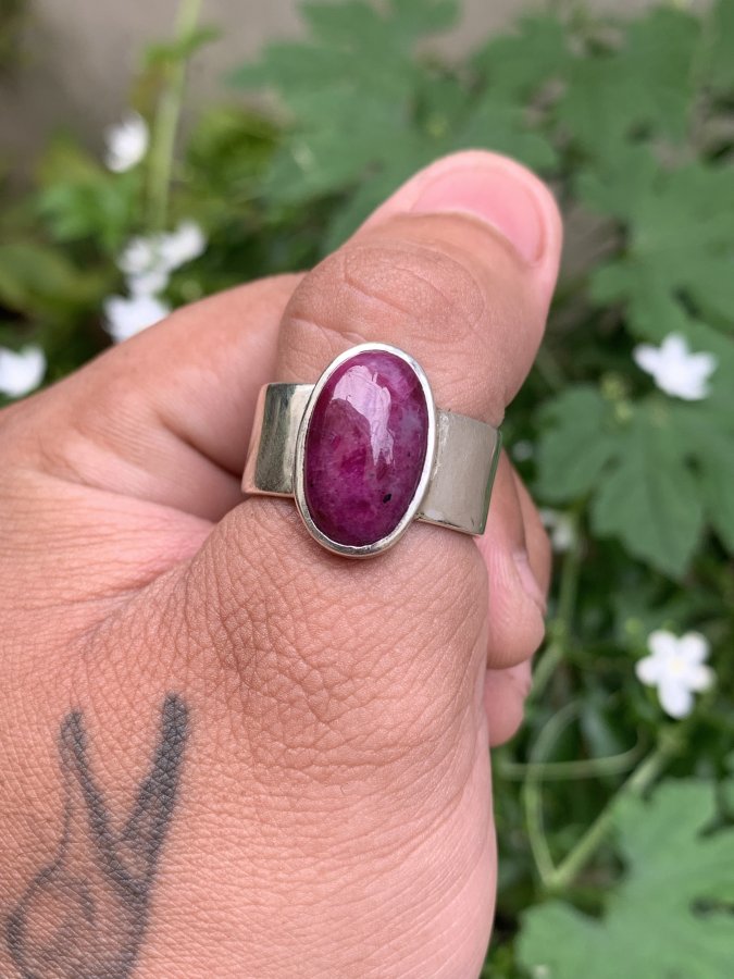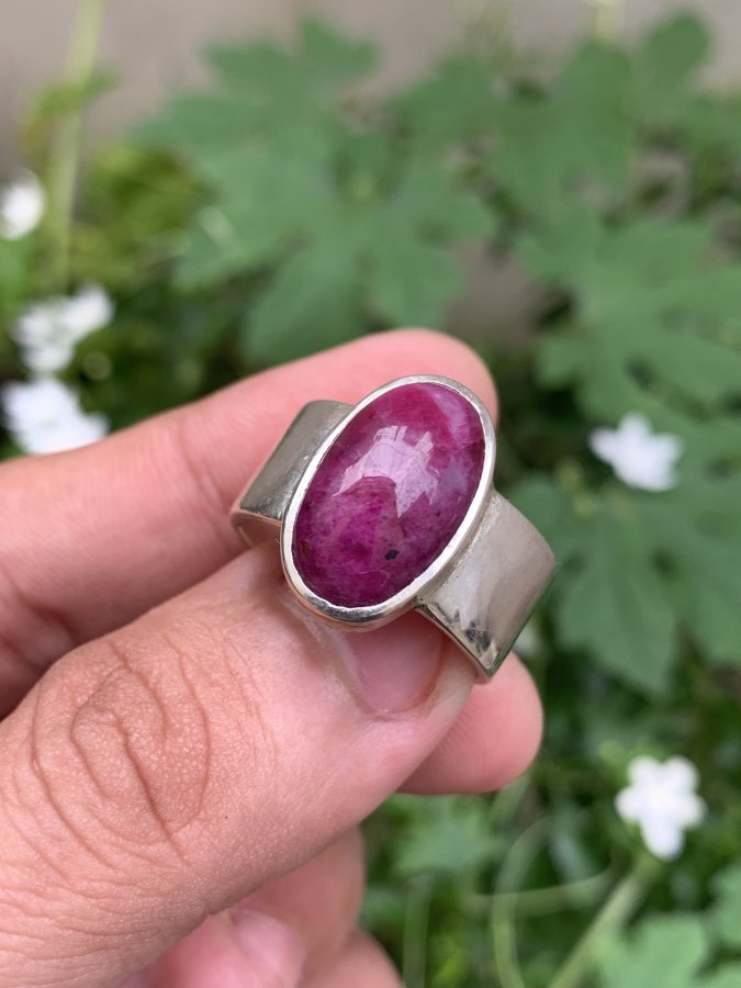 Nhẫn bạc ngoại đá ruby. Phom to đẹp. Size 20,5-21.