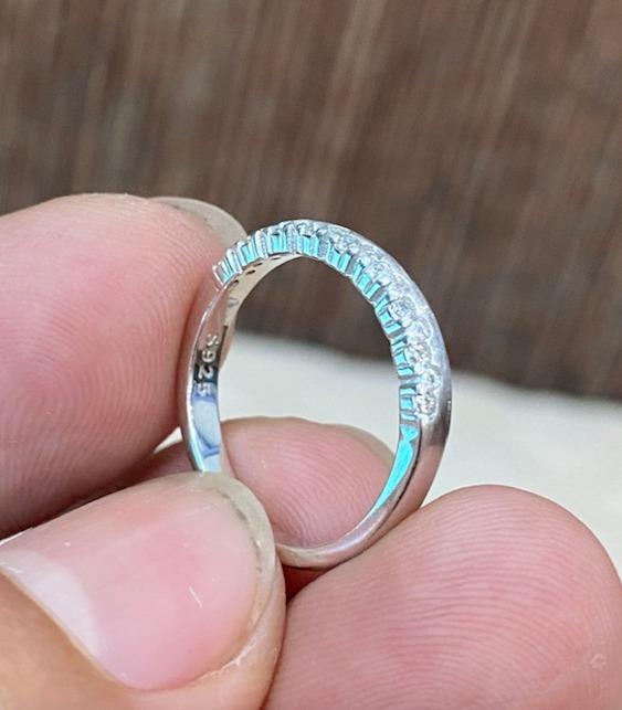Nhẫn bạc ngoại S925 đính đá CZ 1 bên độc đáo, sáng bóng cực sang