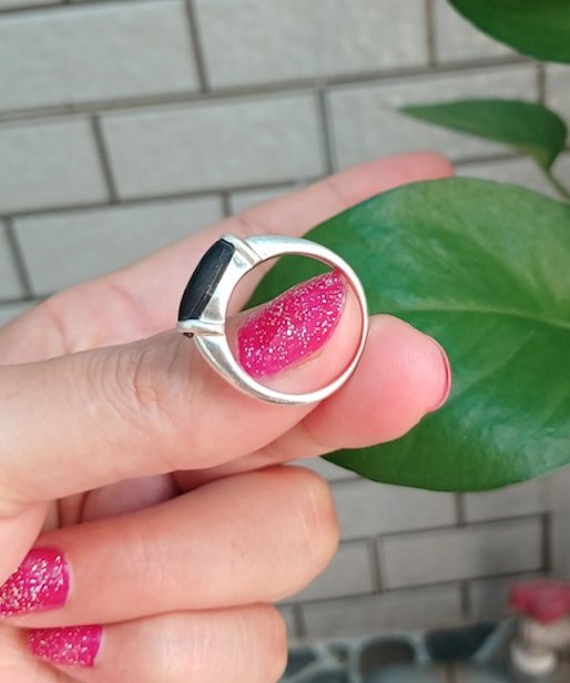 Nhẫn bạc Nữ đính xà cừ, viên nằm ngang, form độc, cực sang