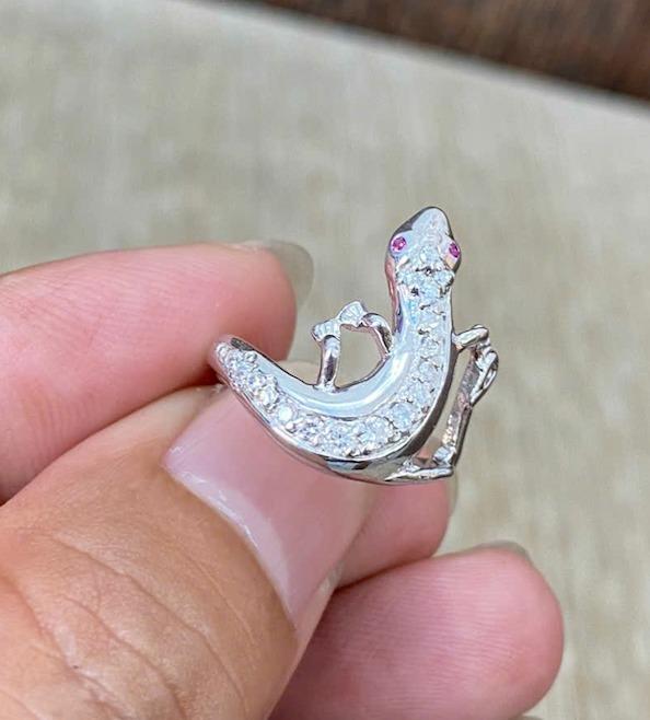 Nhẫn bạc Nữ đúc hình con thằn lằn mắt đính Ruby tuyệt đẹp(500k)