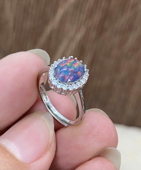 Nhẫn bạc Nữ free size, mặt đính Opal, viền đính CZ cực đẹp