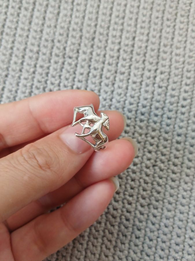 🌈 🌈 🌈 Nhẫn bạc nữ, hai con dê quấn quýt nhau, size : 15,4mm.
