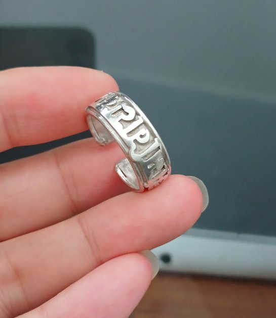 Nhẫn bạc uni freesize thủ công, mặt khắc chữ phạn ấn tượng độc đáo